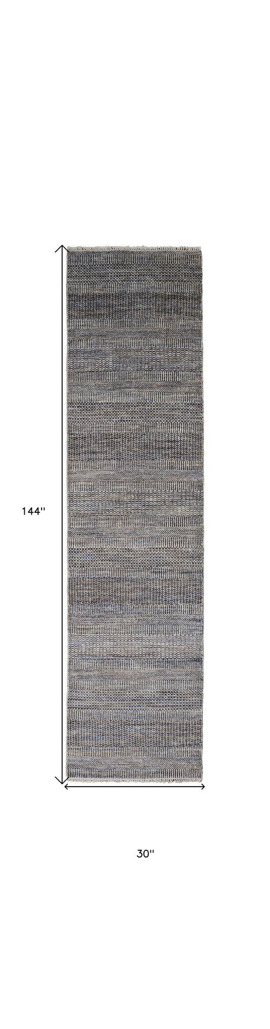 12' Gray Wool Striped Hand Knotted Runner Rug