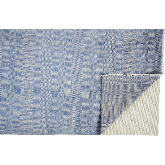 12' x 15' Blue and Silver Wool Striped Hand KNotted Area Rug