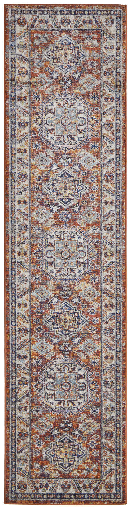 10' Blue and Ivory Abstract Power Loom Distressed Runner Rug