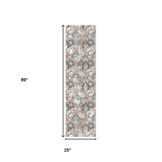8' Runner Ivory and Blue Floral Runner Rug