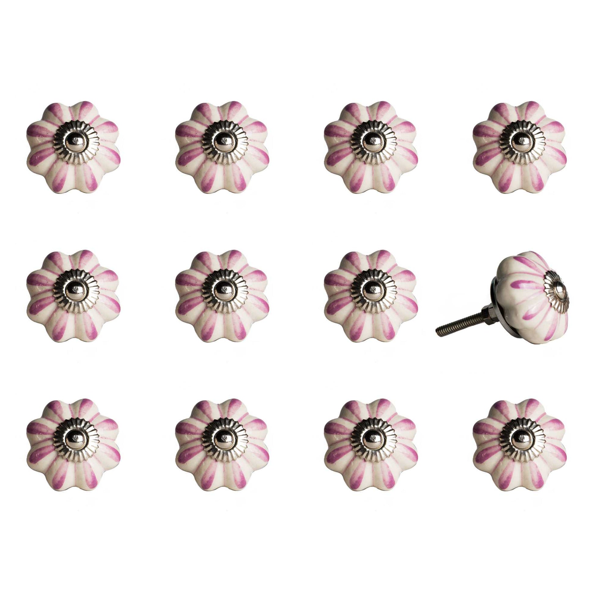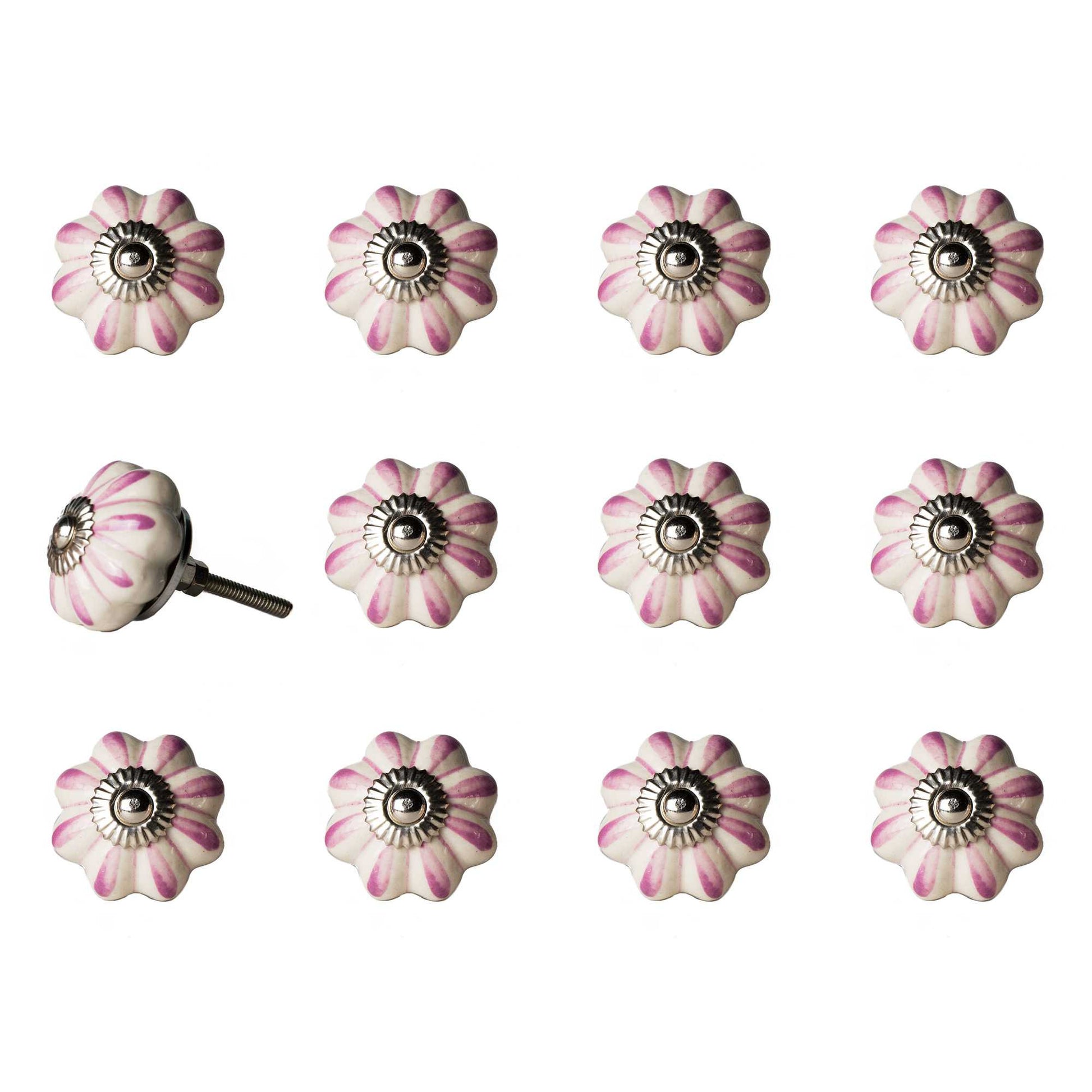 Creatively adorned with bright hues of colors, our 12 pack knobs will suitably accent any furniture in the home. Add a classic touch to your room decor with these ornate pieces that are artfully hand-painted by our skilled artisans. Whether you want them on your doors, drawers, cabinets or wardrobes, these charming knobs are designed to perfectly anchor your living space with an enduring style. Each of these chic knobs comes with a bolt that can be cut to size to fit into any furniture piece, making it highly multi-functional. Available in assorted colors.