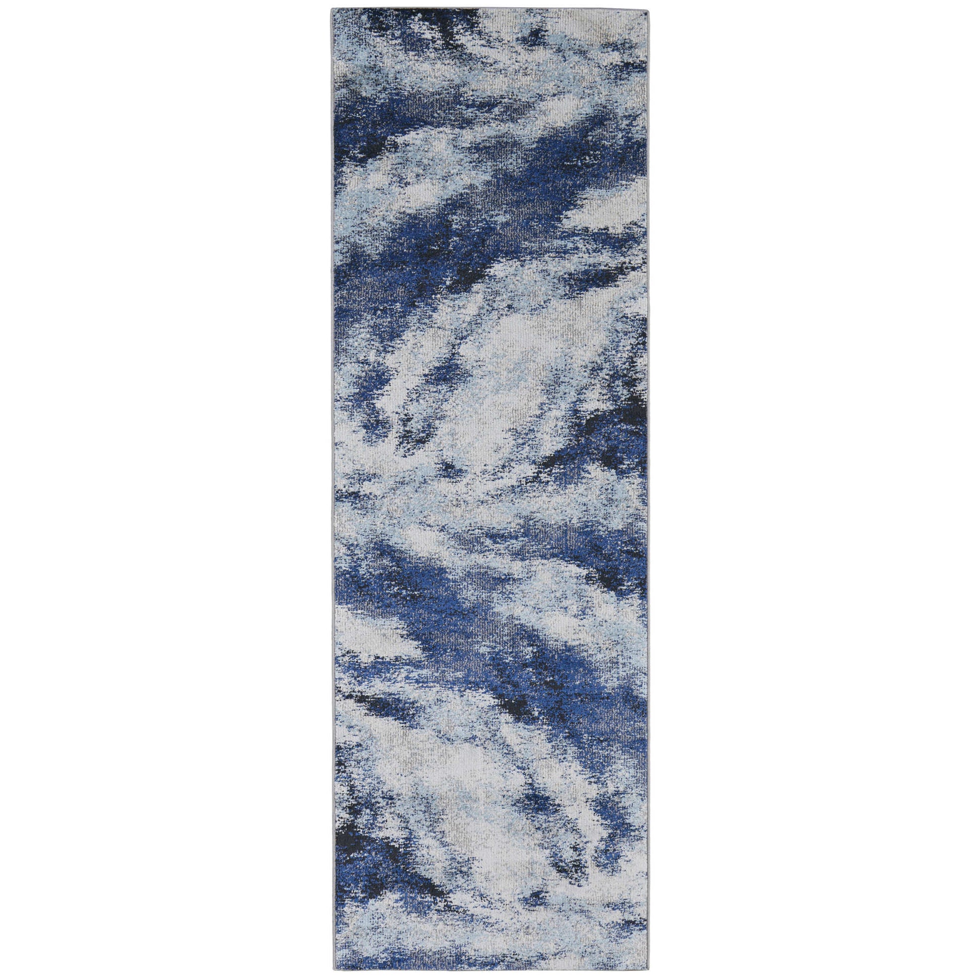 10' Blue and Ivory Abstract Power Loom Runner Rug