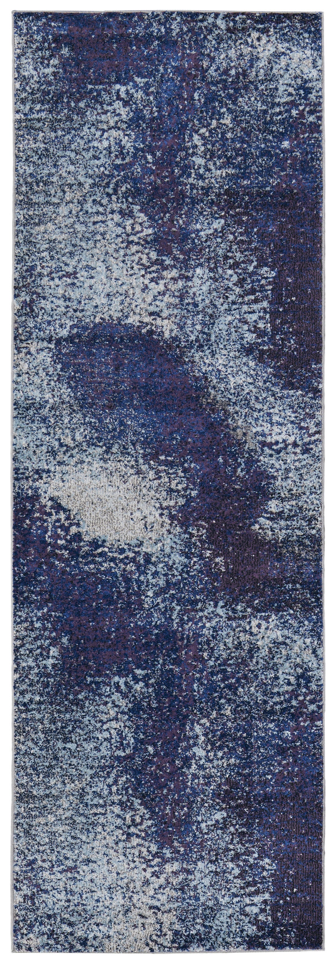 10' Blue and Purple Abstract Power Loom Runner Rug