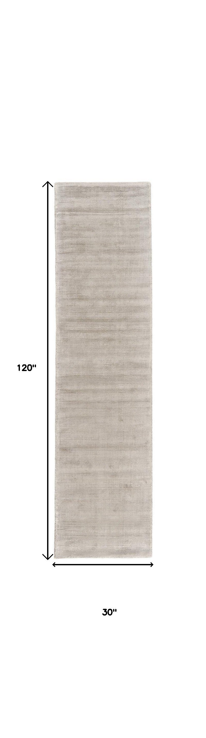 Set an inviting tone in your space with this 10-foot ivory and tan hand woven runner rug. This runner shaped rug flaunts a ivory and tan color that will be a great way to accent your space. Solid colors are versatile and will blend with any existing decor style. Crafted by skilled artisans, this hand woven rug is genuine and unique. No two will be exactly alike. Area rugs help to give warmth and sense of home to your space. 30-inch H x 120-inch W x 0.31-inch D
