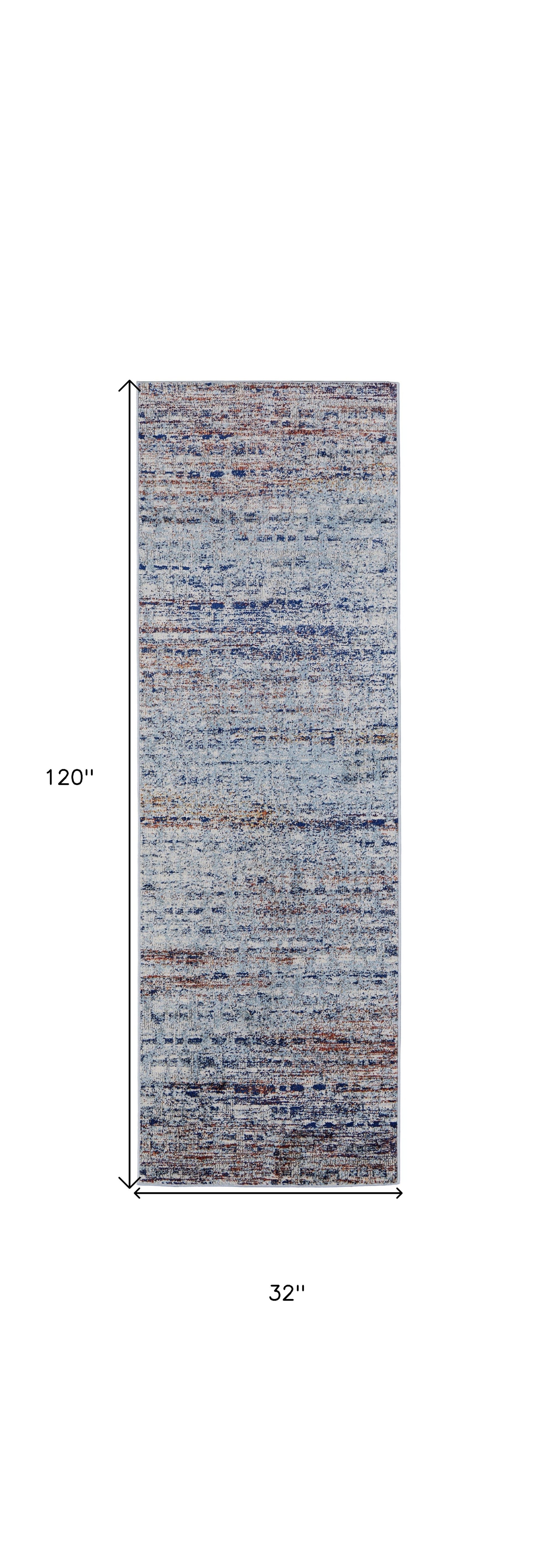 10' Ivory Blue and Orange Abstract Power Loom Runner Rug