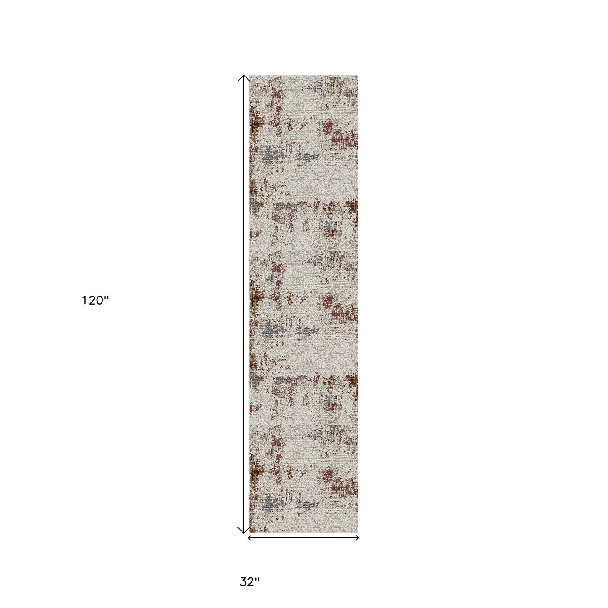 10' Red and Ivory Abstract Power Loom Runner Rug