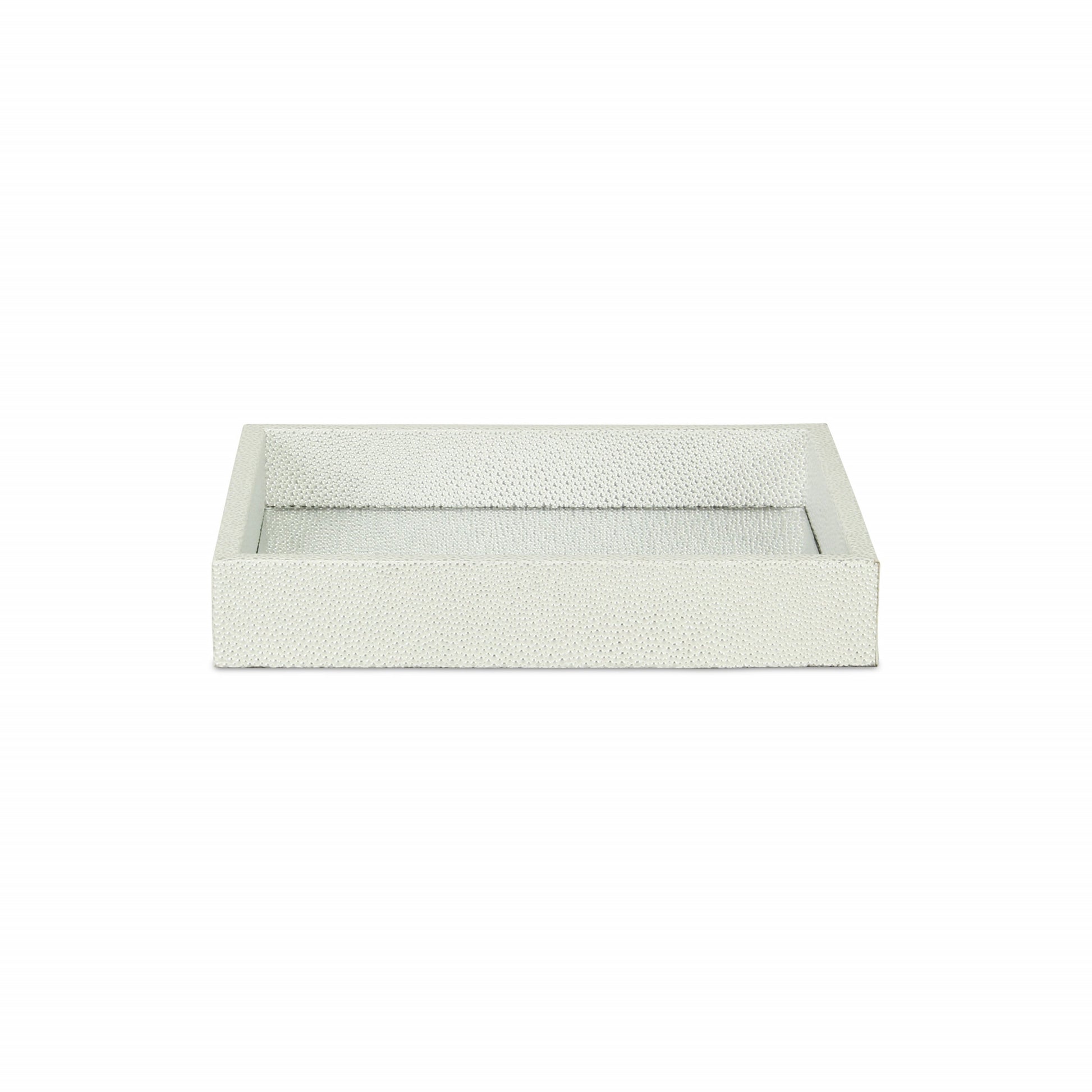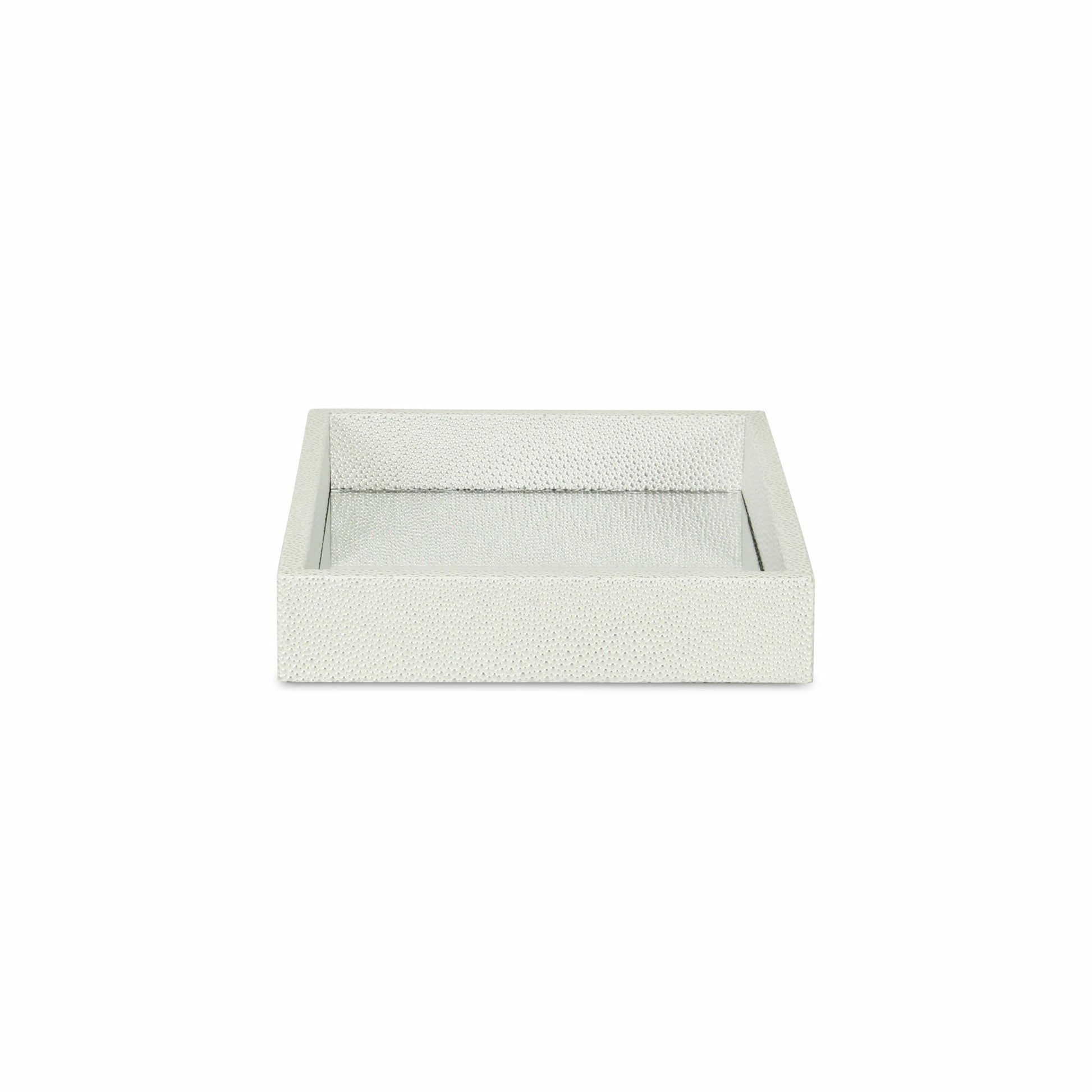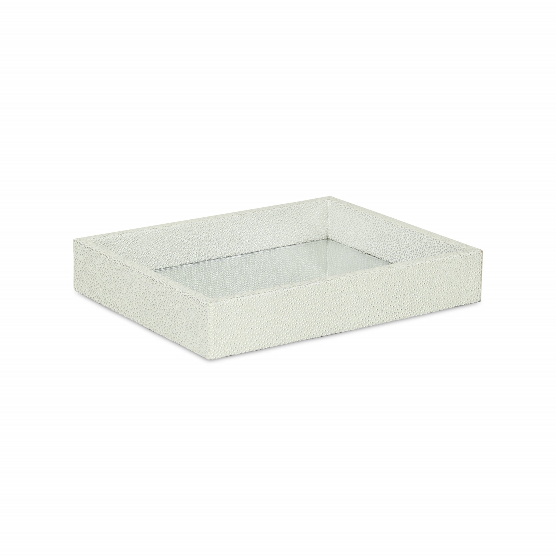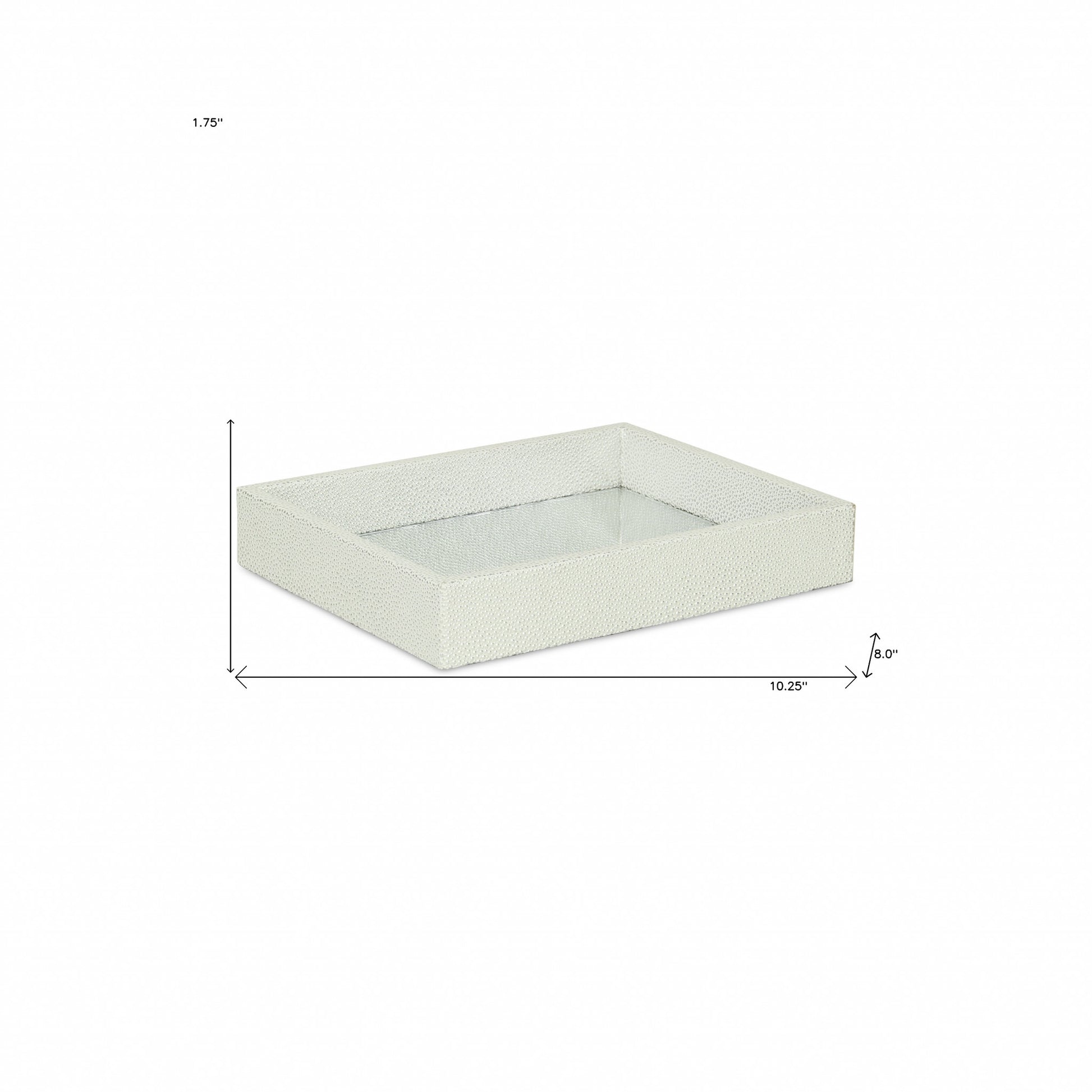 This 10" white silver rectangular wood handmade tray will add a beautiful decorative accent to your decor. This gorgeous rectangular tray is made from genuine wood providing both durability and a classic look. This tray has a food safe finish. 1.75" H x 10.25" W x 8" D