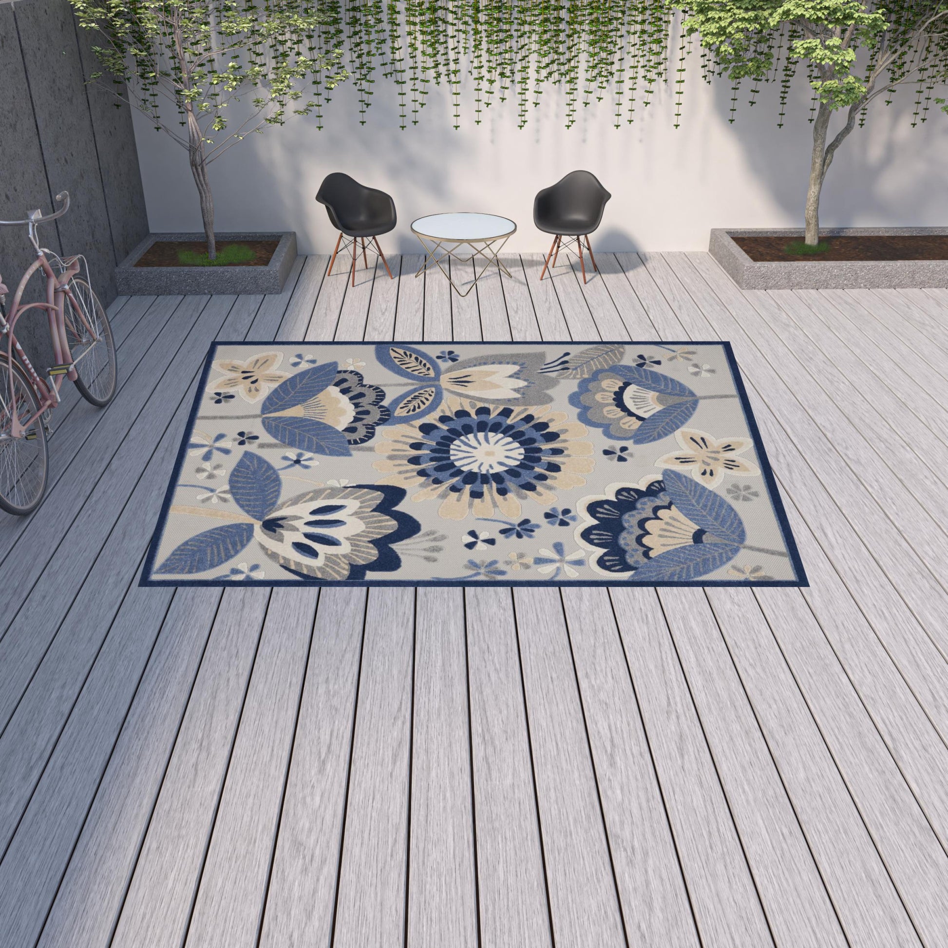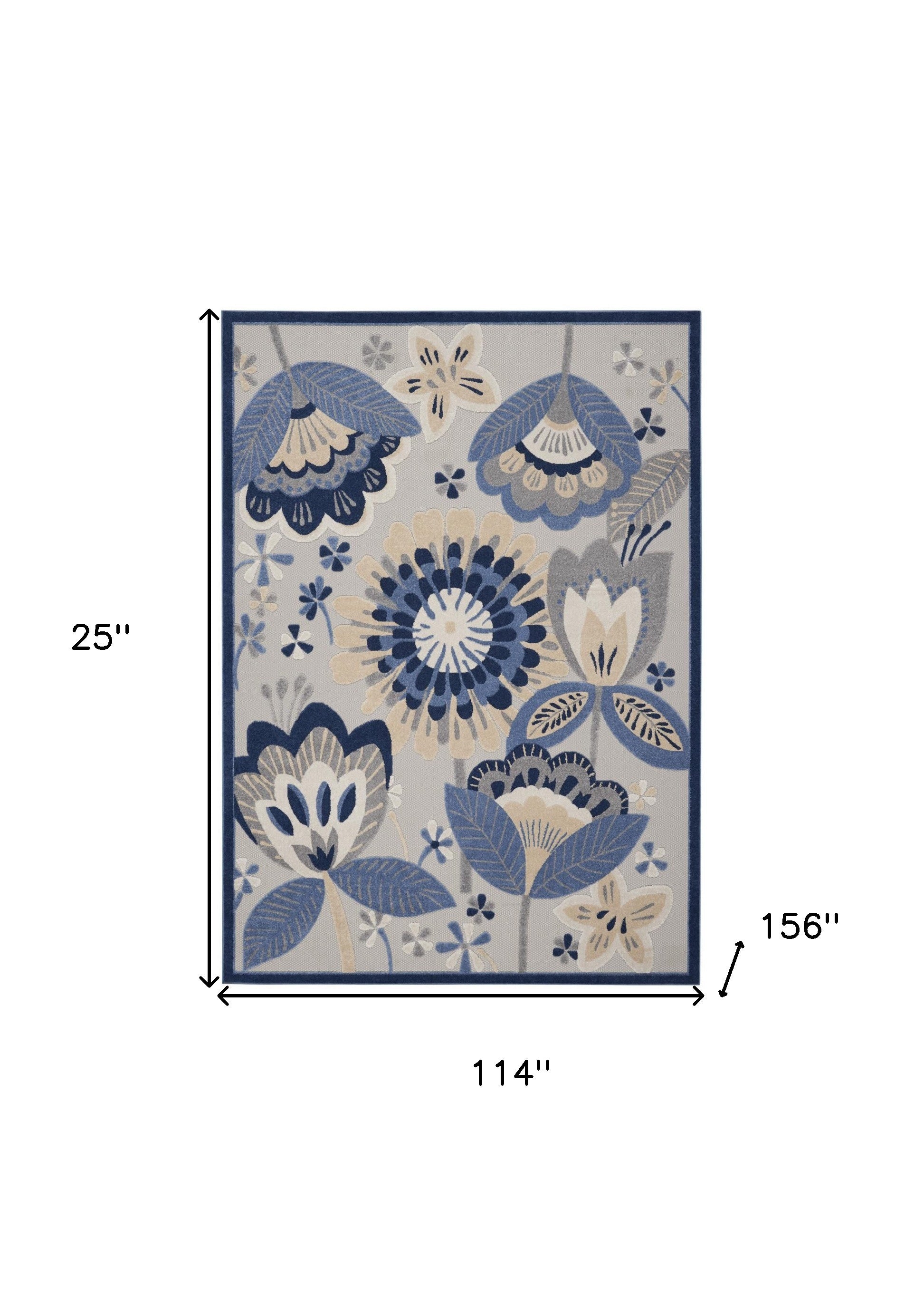 10' X 13' Blue And Grey Floral Non Skid Indoor Outdoor Area Rug