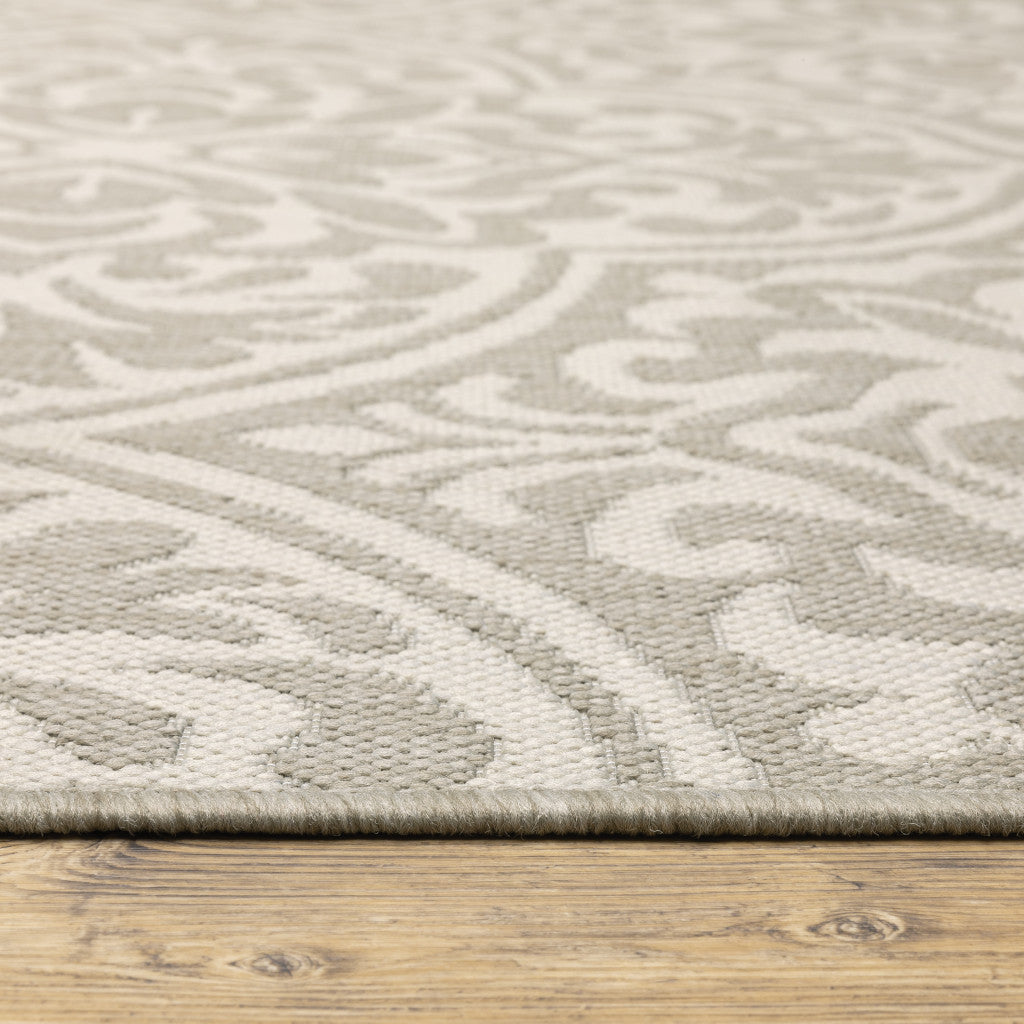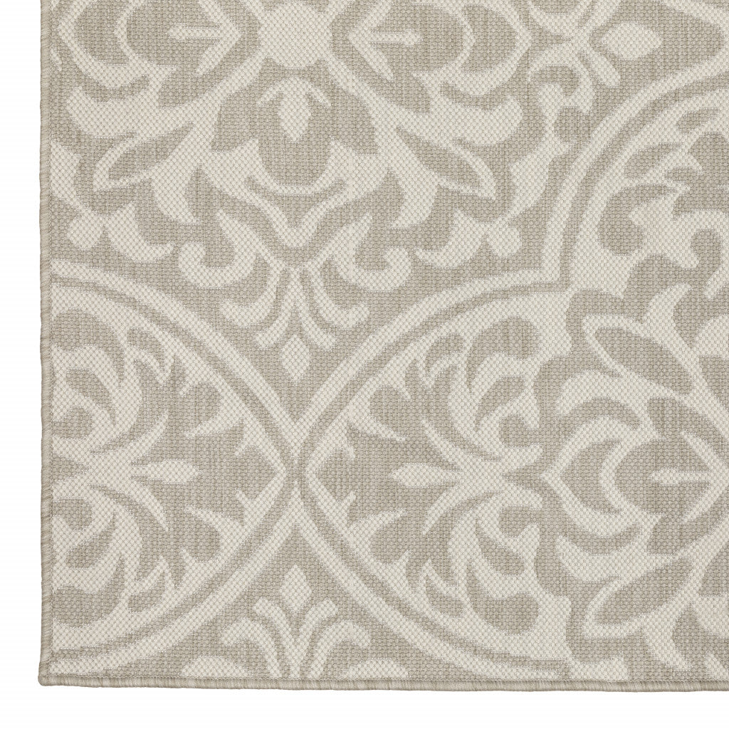 Add great coloration and comfortable texture to your space with this 10-foot x 13-foot gray and ivory floral stain resistant indoor outdoor area rug. This rectangle shaped rug features a floral design in gray and ivory to give it visual interest. A classic shape marries with good looking design for your space Ideal for spaces with kids and pets, this rug is stain resistant to help repel stains and spilled liquids. Area Rugs help to give warmth and sense of home to your space. 0.07-inch H x 118.11-inch W x 153.54-inch D