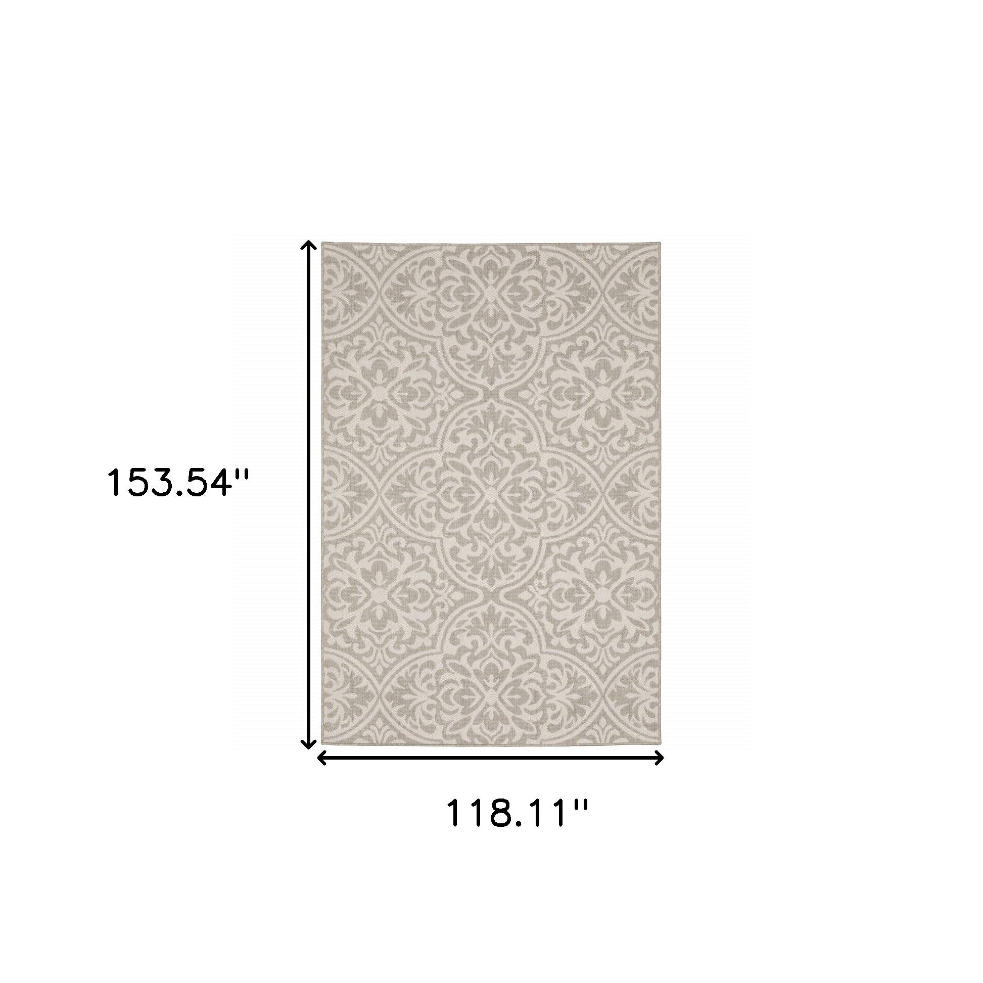 10' x 13' Gray and Ivory Floral Stain Resistant Indoor Outdoor Area Rug
