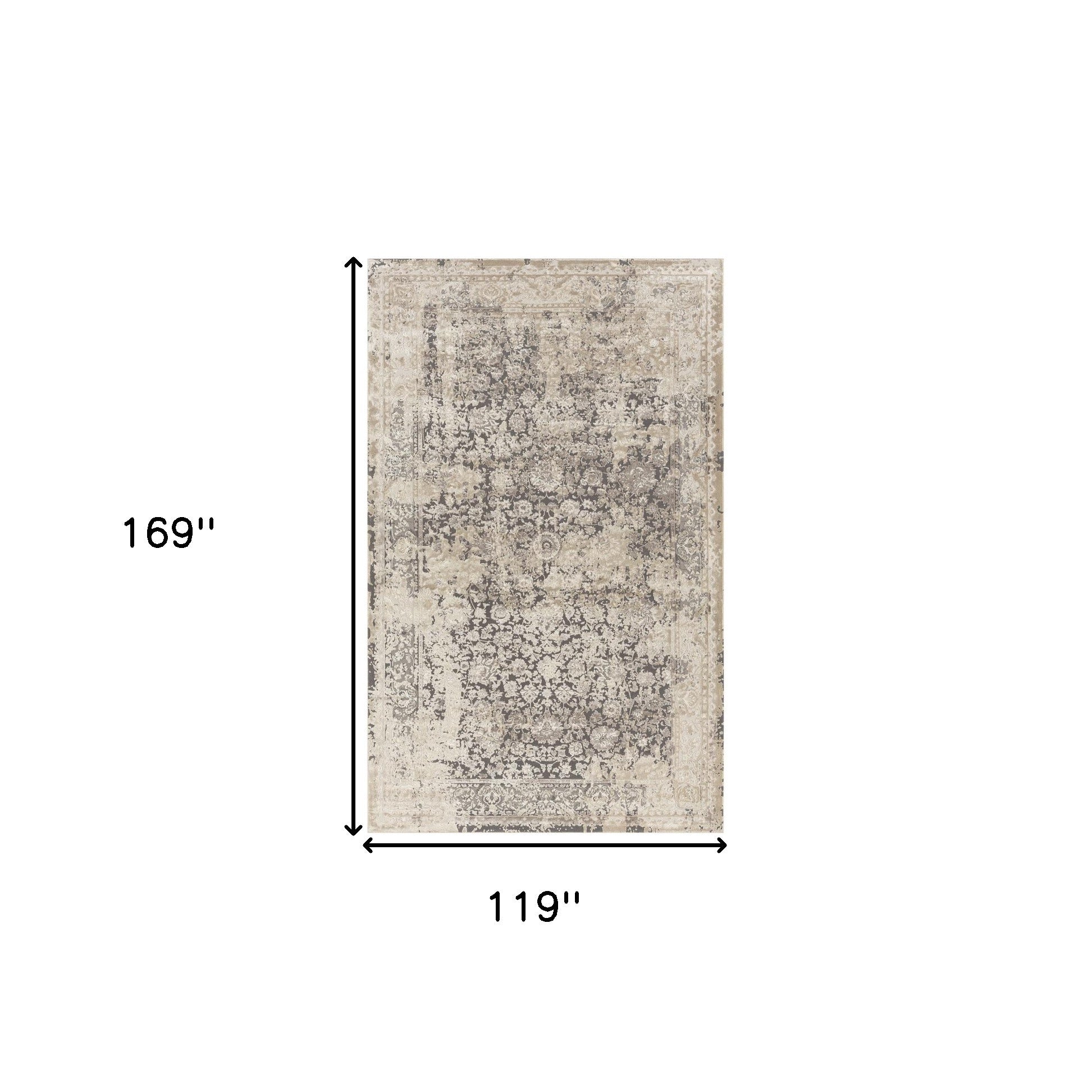 Add some artistry to your room with this 10-foot x 14-foot gray and ivory floral area rug. This rectangle shaped rug features a floral design in gray and ivory to give it visual interest. A classic shape marries with good looking design for your space place this area rug against a hardwood or tile floor and it will enliven your living space with style and sophistication. 119-inch H x 169-inch W x 0.26-inch D