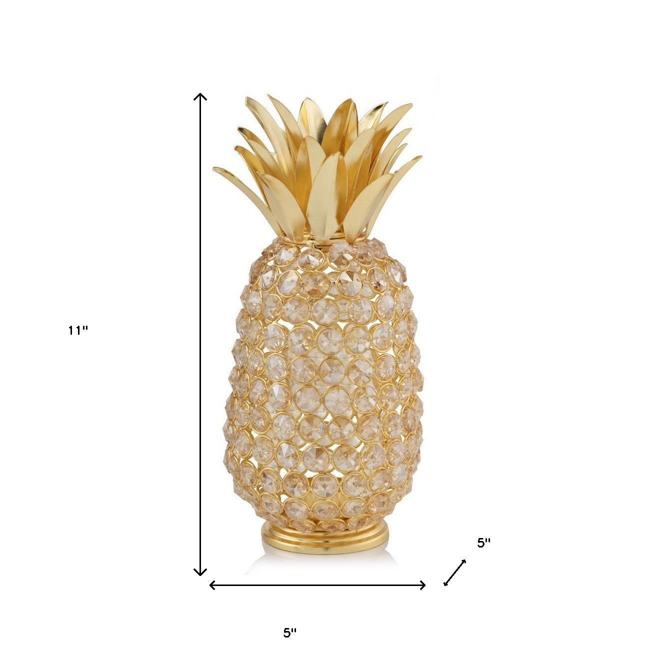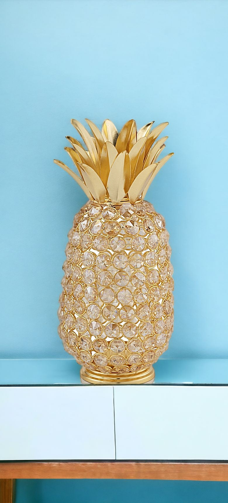 The Gold Pineapple looks like a Jewel on a Table or in a Bookcase. The Gold Frame and Matching Top Fronds are eye catching. A Pineapple is a universal sign of Welcome and nothing says it more than a Pineapple like this!