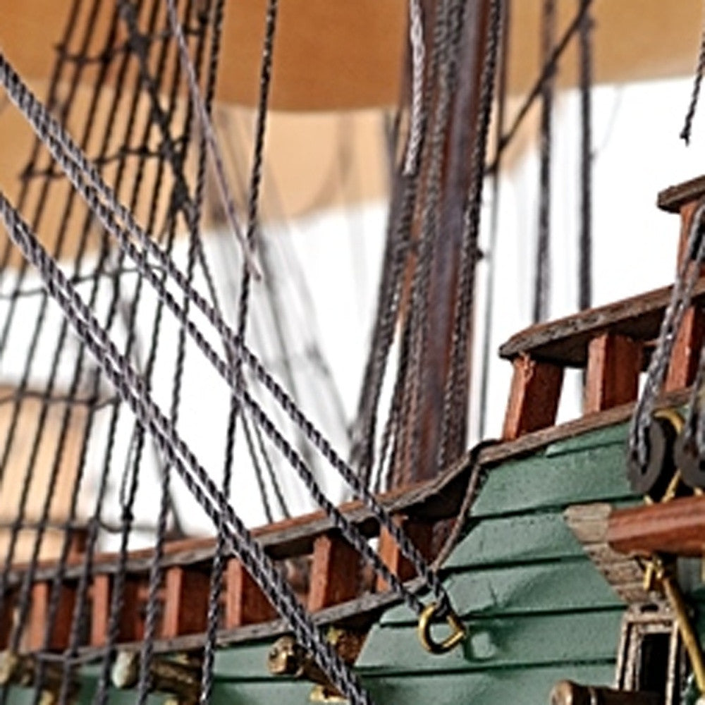 Display this The Friesland Dutch Ship right in your own home or office! The Friesland was a second rank vessel with 80 guns built around 1663, is available as a museum-quality, FULLY ASSEMBLED model. Master craftsmen using historical photographs, drawings or original plans meticulously handcraft these highly detailed wood models from scratch. They are built to scale with high-grade wood such as: western red cedar, rosewood, and mahogany. They are 100% hand built individually using plank-on-frame construction method and are similar to the building of actual ships. Each model requires hundreds of hours to finish and must go through a demanding quality control process before leaving the workshop. This Friesland model has distinctive two tone colors wood on the hull. It also features plank on frame, three decks, and two rows of ferocious cannons on each side of the ship. The front bowsprit and three large masts are connected securely using advanced rigging and lines painstakingly knotted and fastened by hand. Each yard has an attached hand-stitched unfurled sails made of fine linen. Metal anchors and a wooden rudder are visible on the front and rear of the ship. On the deck, there are stationed cannons, an authentic hand-built lifeboat with ribs and planks, wooden cabin, and many other handcrafted ornaments. There is also an exquisite detailed admirals quarter on stern with beautiful handcrafted metal lanterns, statues, and ornaments. This model comes standard with a solid wood base and brass nameplate. Itll make a perfect gift for home or office decorator, boat enthusiast or passionate collector.
