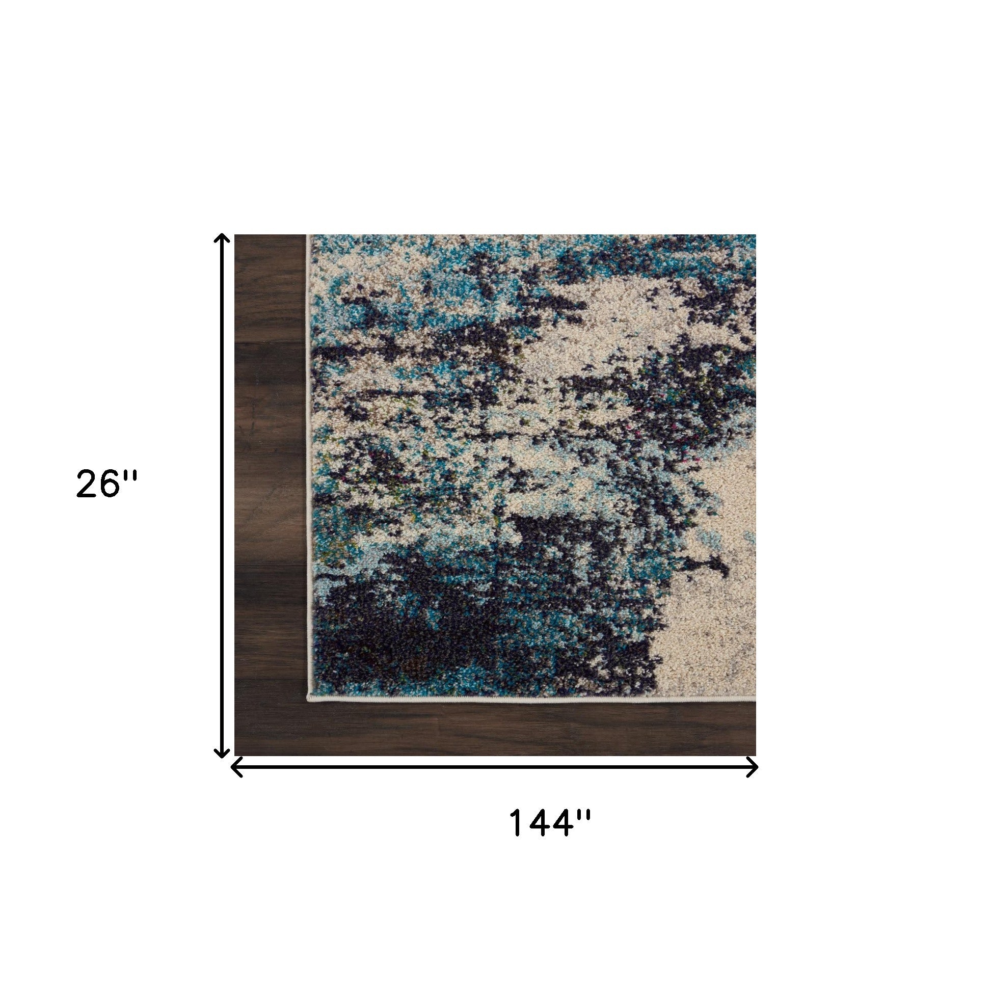 Set an inviting tone in your space with this 12' ivory abstract power loom runner rug. This runner shaped rug features a abstract design in ivory to give it visual interest. A classic shape marries with good looking design for your space The coloring of this rug adds a delightfully neutral tone to your home and will easily match with most any decor. This superior Turkish rug represents the highest quality and is built to last. Place this area rug against a hardwood or tile floor and it will enliven your living space with style and sophistication. .50" H x 26.00" W x 144.00" D