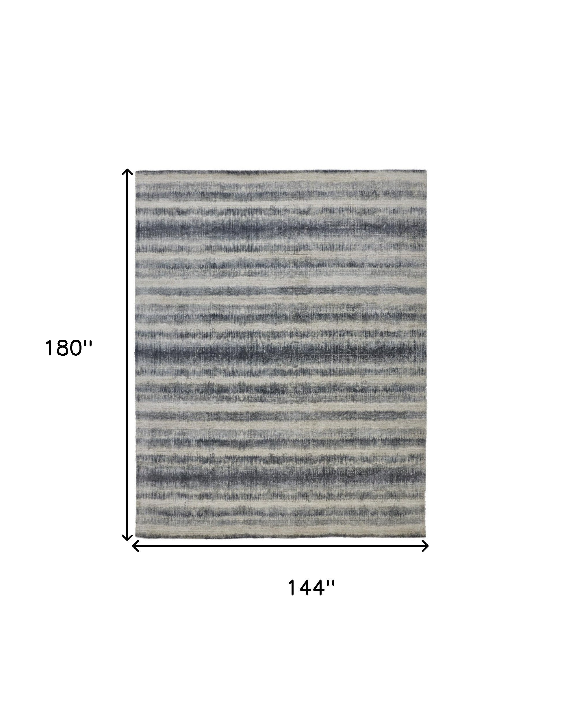 12' X 15' Ivory And Blue Abstract Hand Woven Area Rug