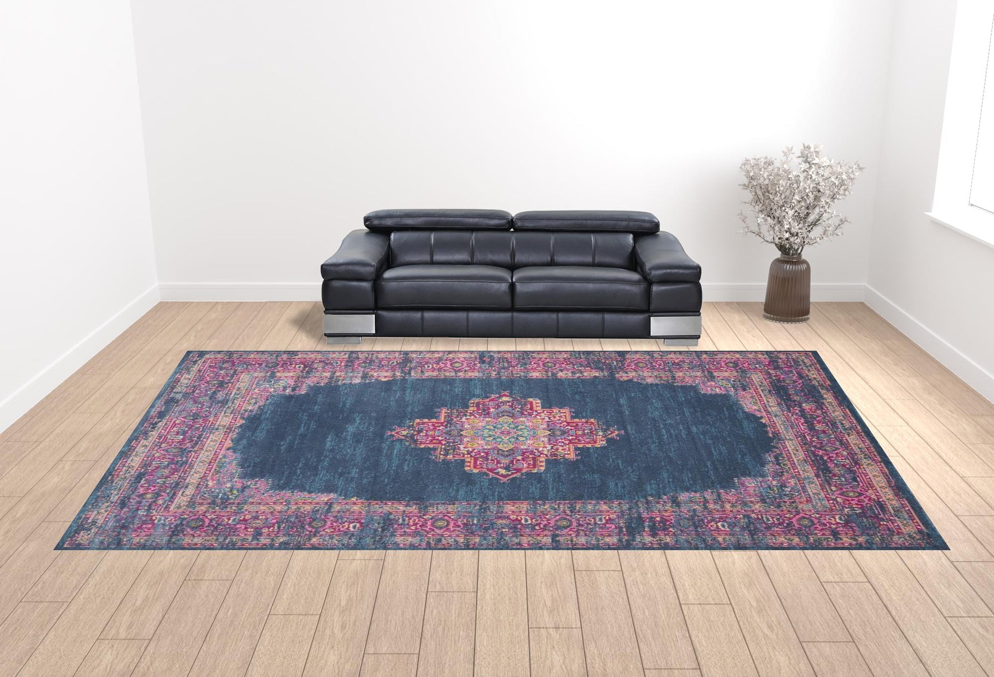 Set an inviting tone in your space with this 12' x 18' blue moroccan power loom distressed area rug. This rectangle shaped rug features a moroccan design in blue to give it visual interest. A classic shape marries with good looking design for your space Made in Turkey, this rug offers high quality combined with good looking designer sensibilities. Place this area rug against a hardwood or tile floor and it will enliven your living space with style and sophistication. .50" H x 144.00" W x 216.00" D
