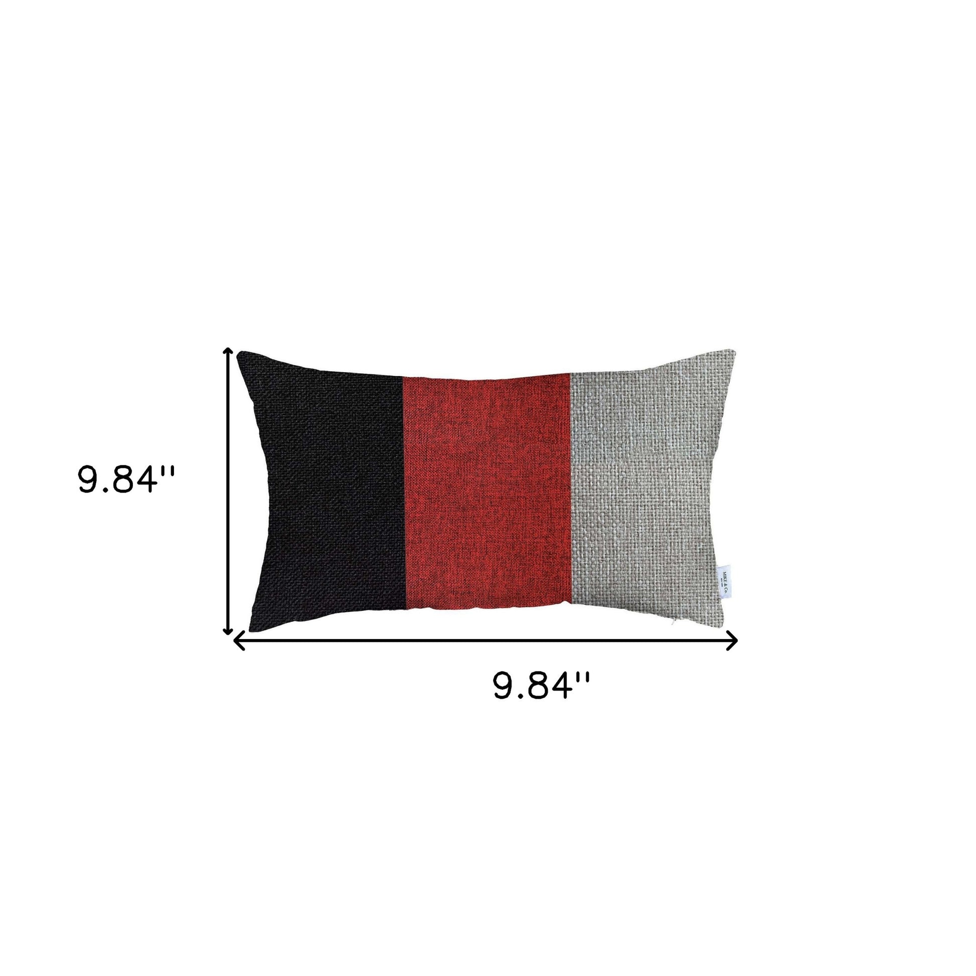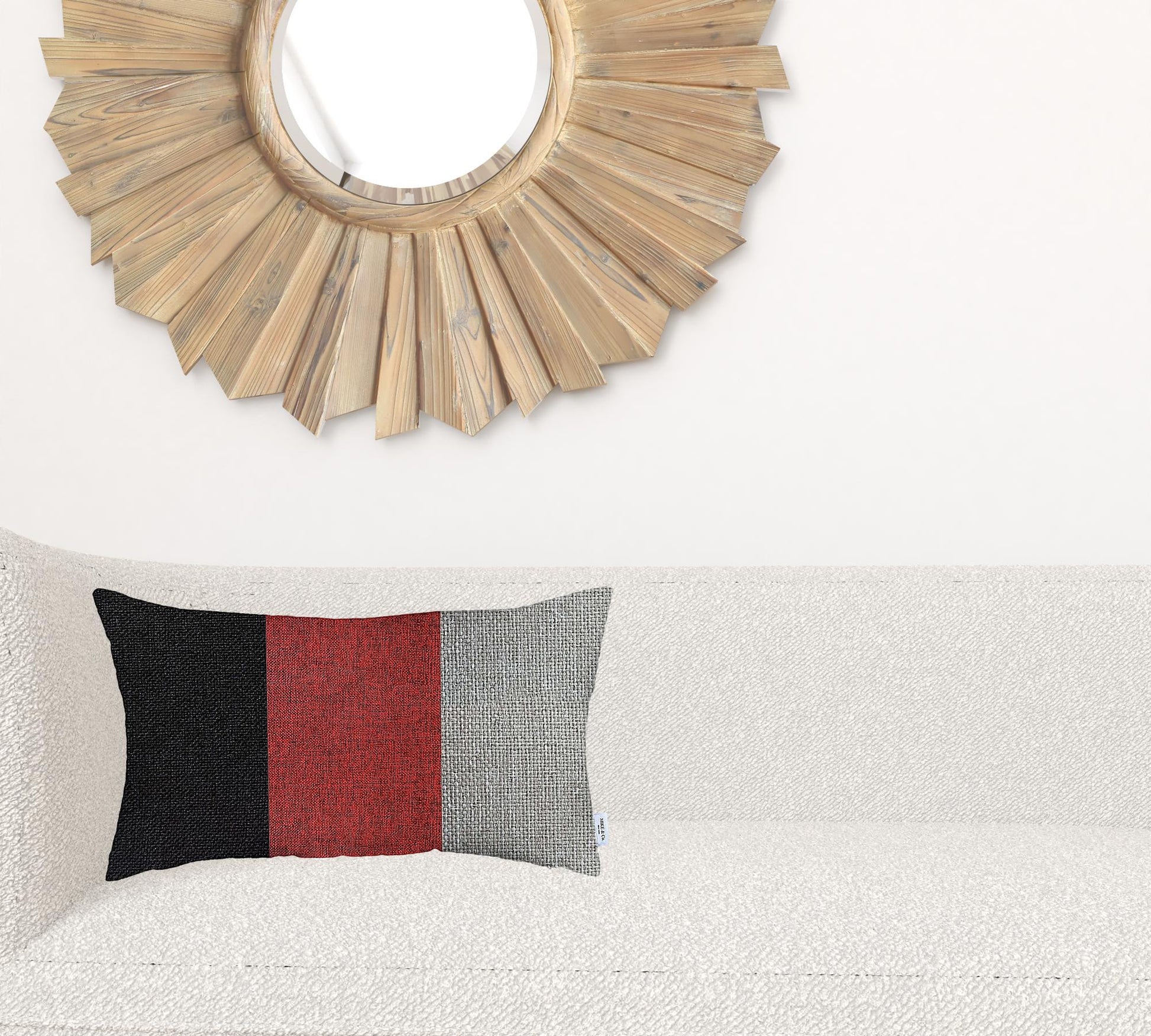12" X 20" Black And Red Geometric Zippered Handmade Polyester Lumbar Pillow Cover