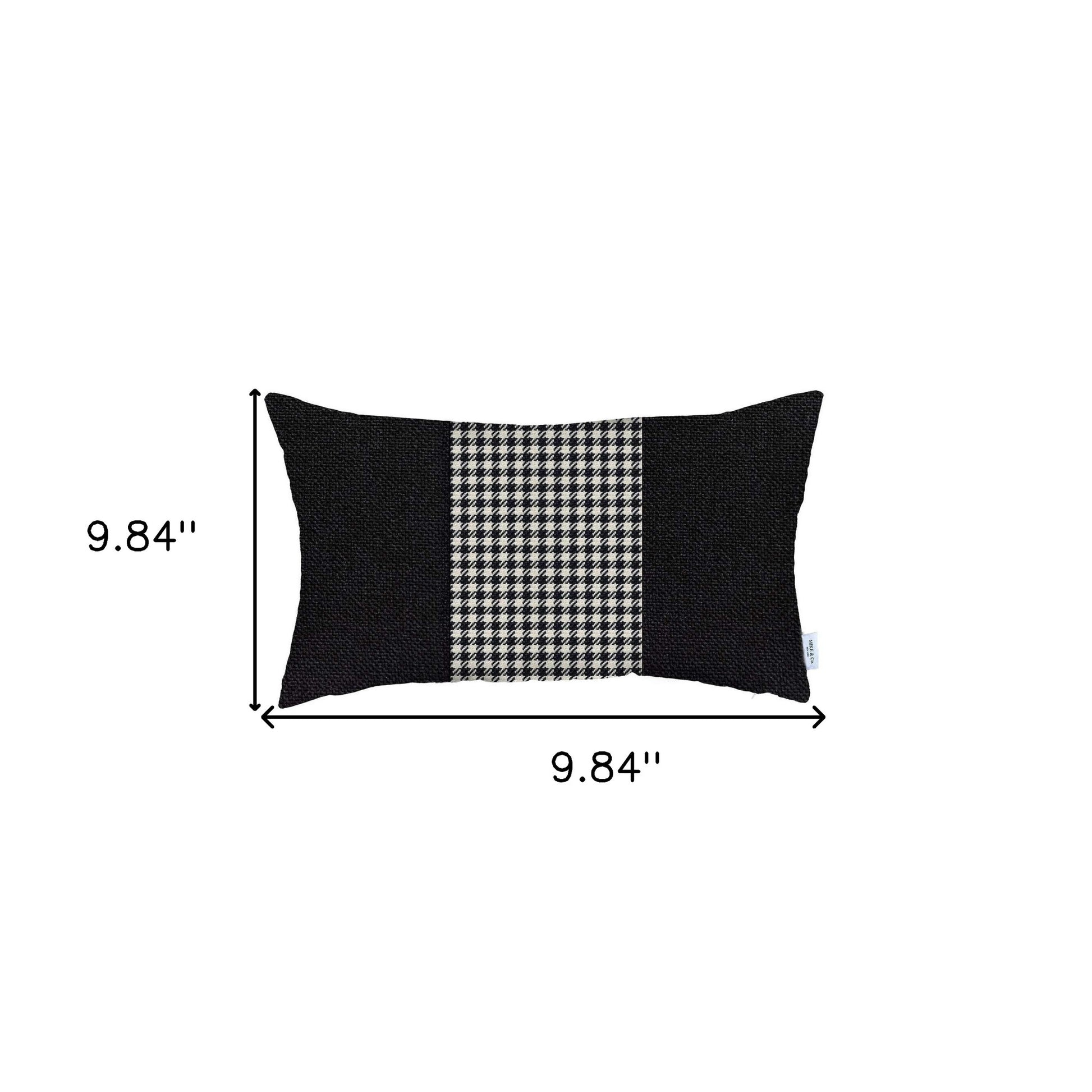 12" X 20" Black And White Houndstooth Zippered Handmade Polyester Lumbar Pillow Cover