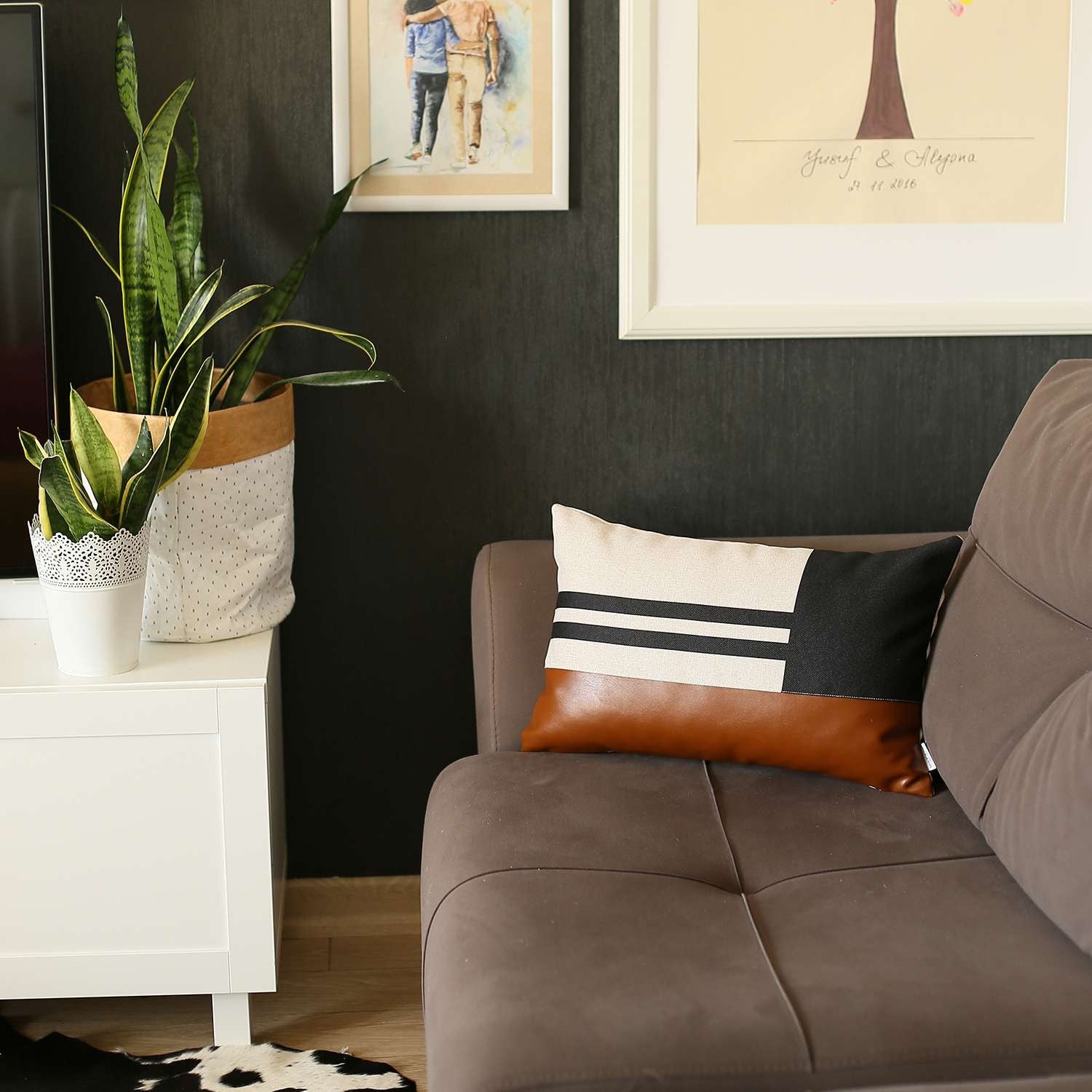 The 12" x 20" brown and black striped zippered handmade polyester lumbar pillow cover is the perfect decorative accessory for your home. The brown and black coloring of the extremely durable and long lasting polyester pillow cover will add dimension and texture to your space. Great to use on its own or mix with other decorations for the perfect look. Decorative pillows are a great way to change up the look and feel of your space easily and quickly. 0.1" H x 12" W x 20" D