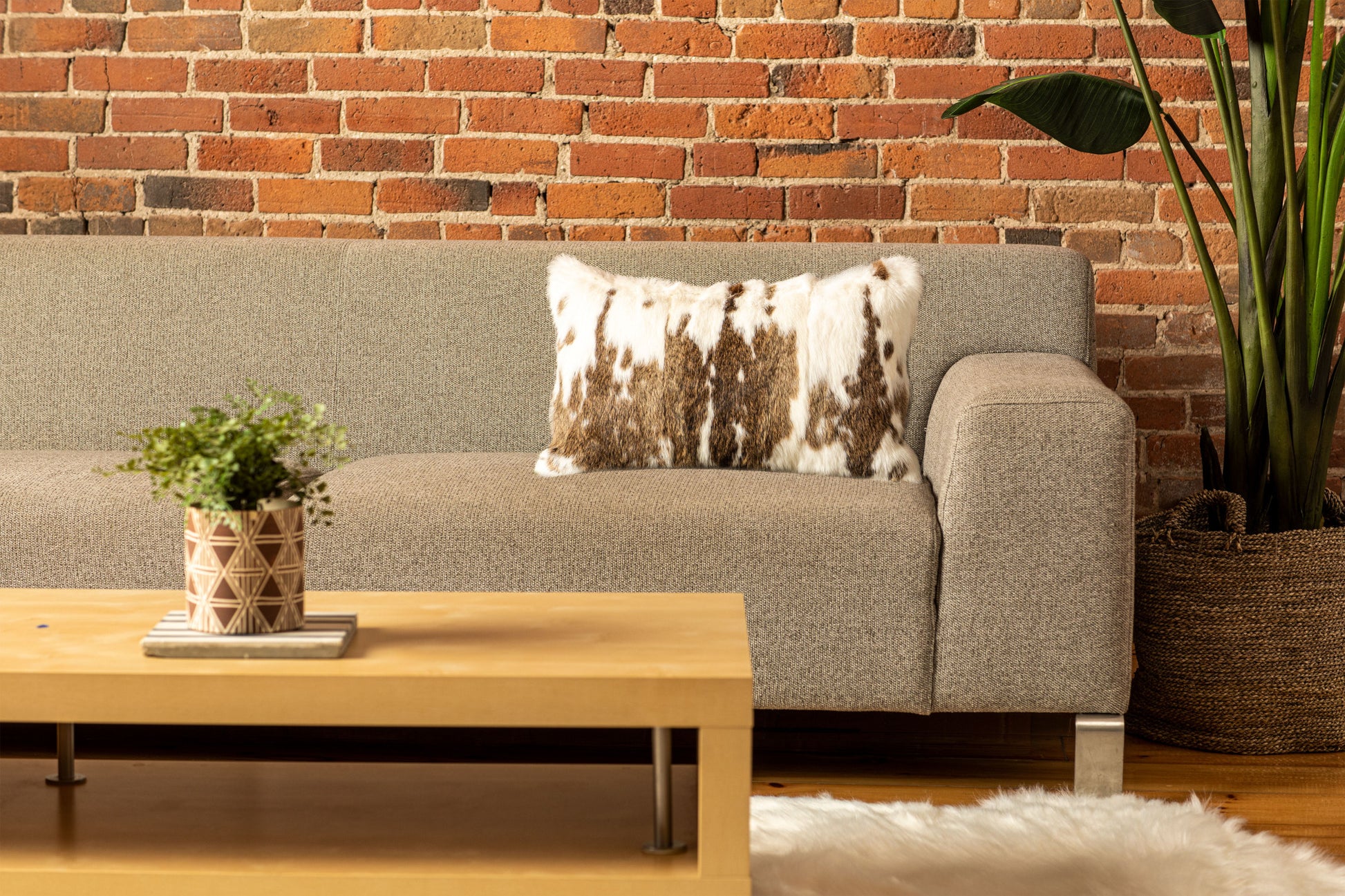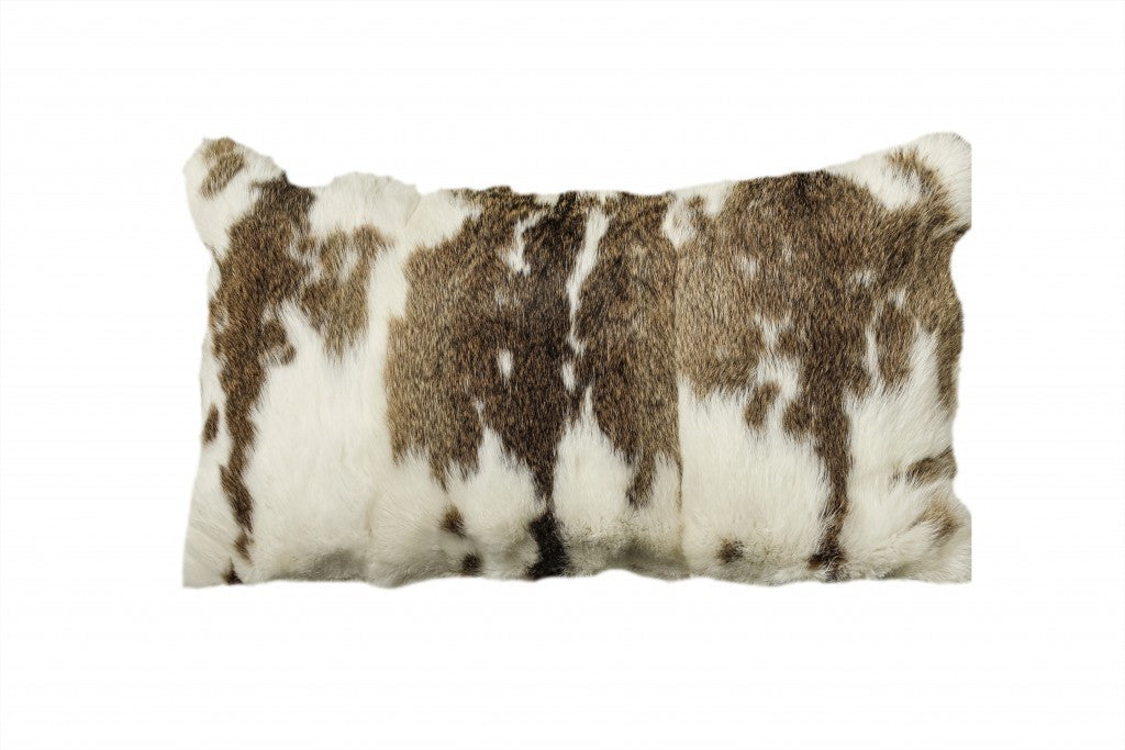 12" X 20" Brown And White Rabbit Natural Fur Throw Pillow