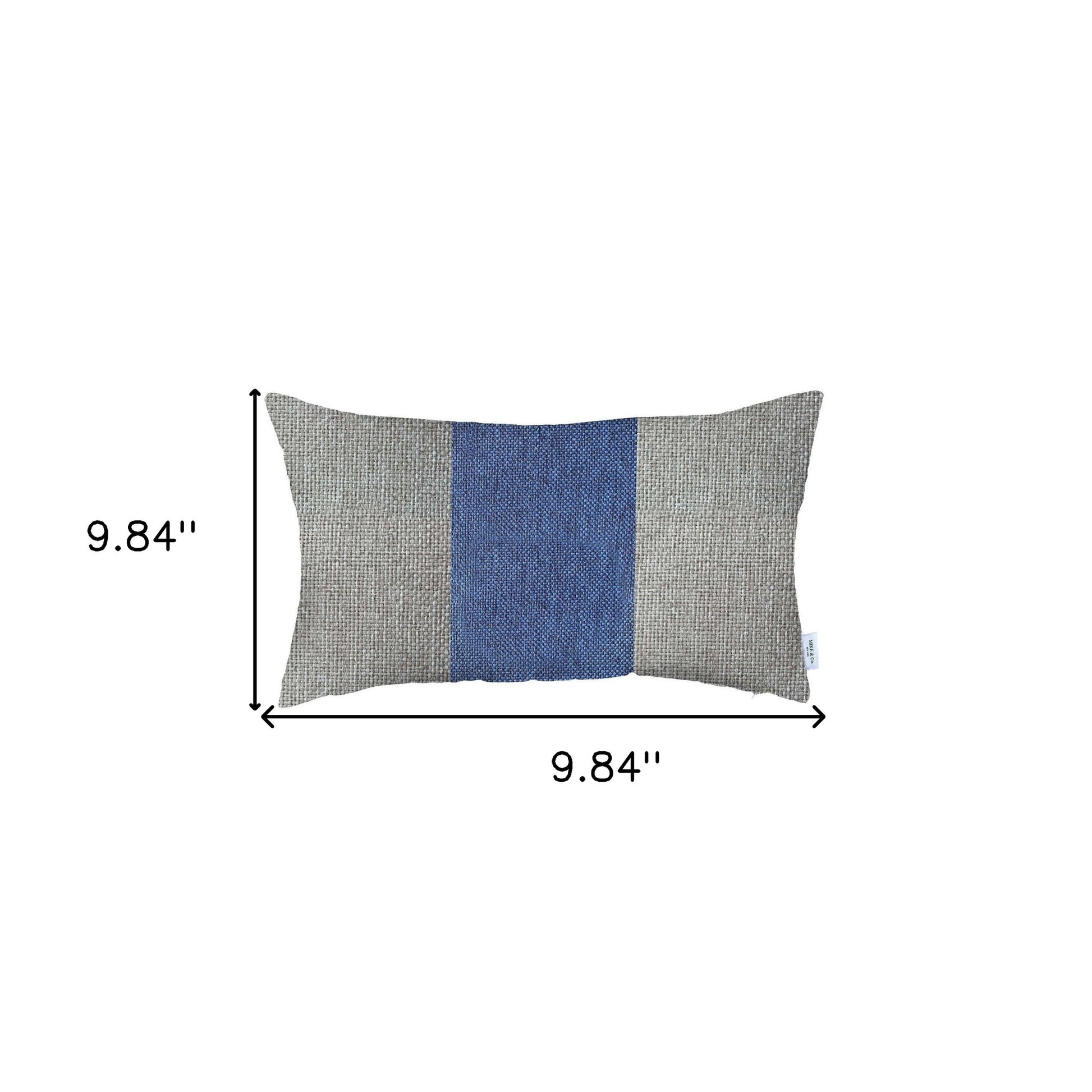 12" X 20" Grey And Blue Geometric Zippered Handmade Polyester Lumbar Pillow Cover