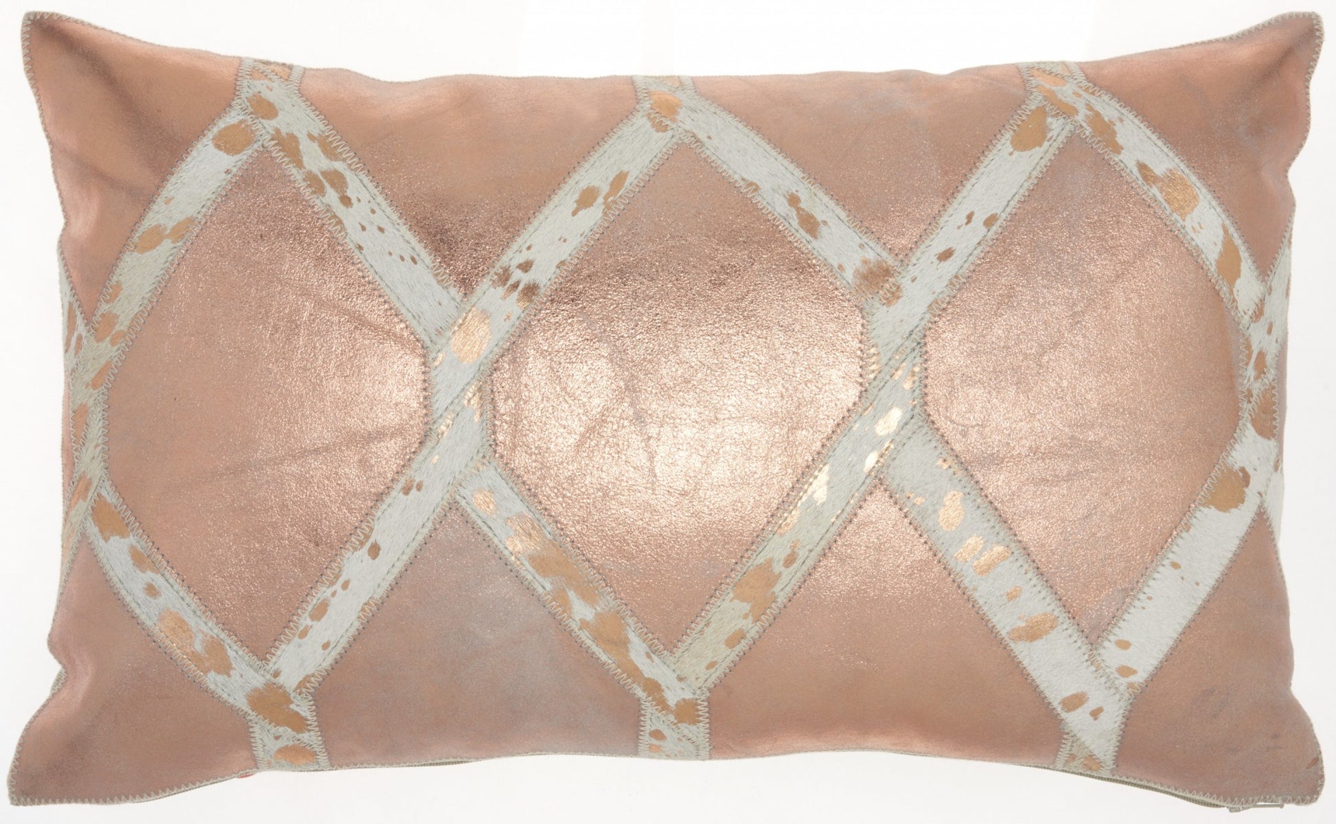 12" X 20" Rose Gold and White Metallic and Cowhide Throw Pillow