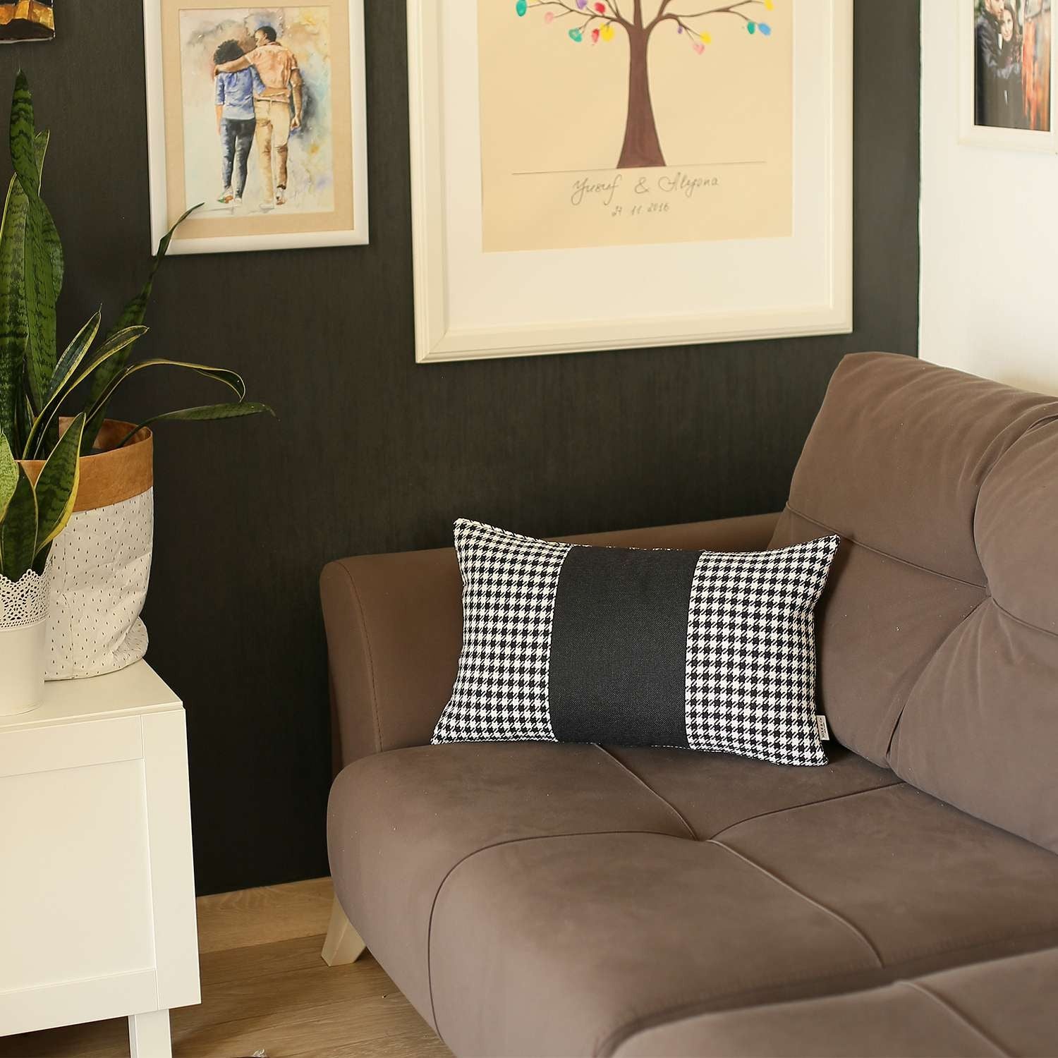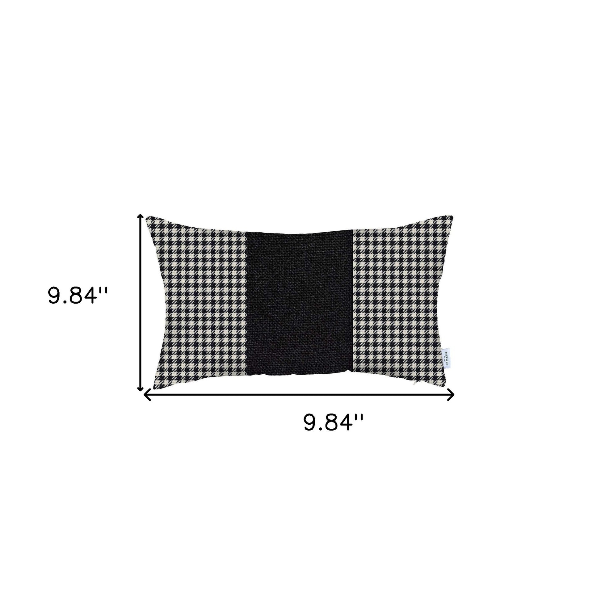 12" X 20" White And Black Houndstooth Zippered Handmade Polyester Lumbar Pillow Cover