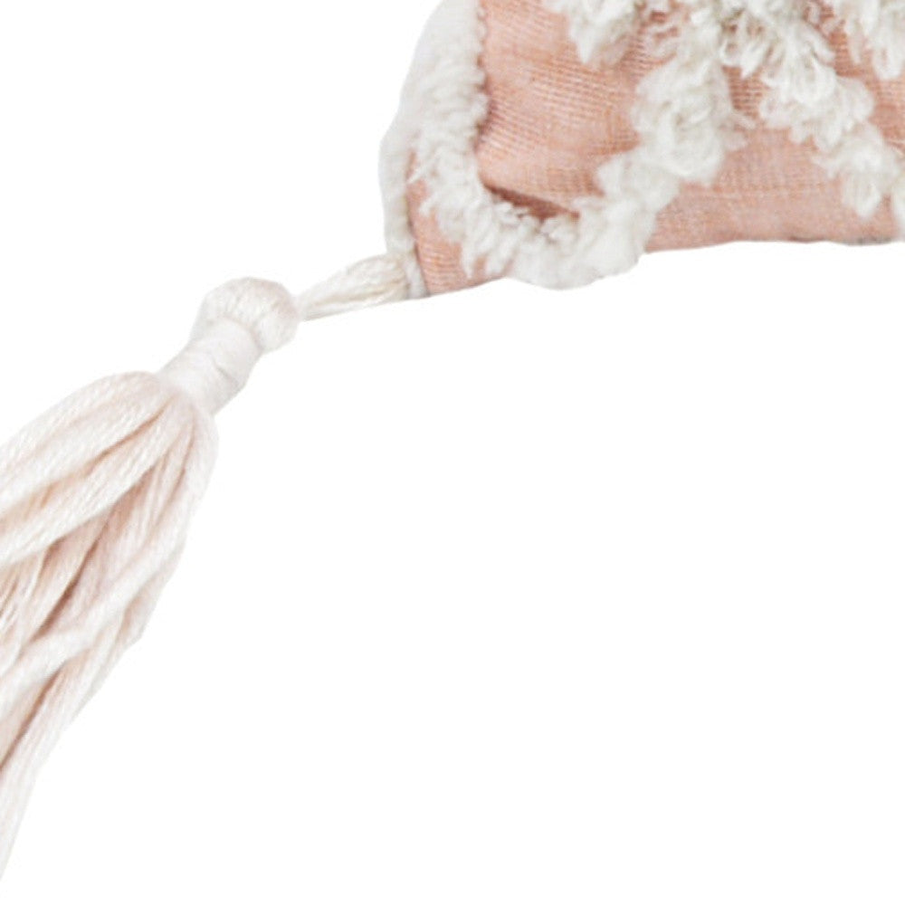 The 13" x 18" beige and white abstract zippered polyester throw pillow with tassels is the perfect decorative accessory for your home. Fun and decorative tassels add some high end and hand-crafted textural designer touches. Great to use on its own or mix with other decorations for the perfect look. Decorative pillows are a great way to change up the look and feel of your space easily and quickly. 4" H x 13" W x 18" D