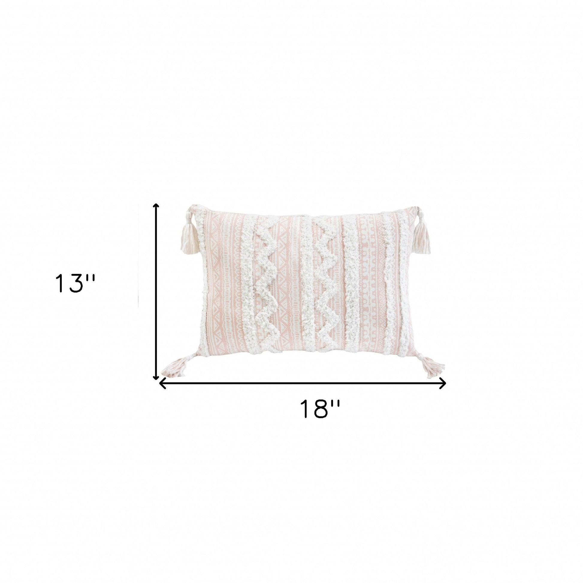 13" X 18" Beige And White Damask Zippered Polyester And Burlap Blend Throw Pillow With Tassels