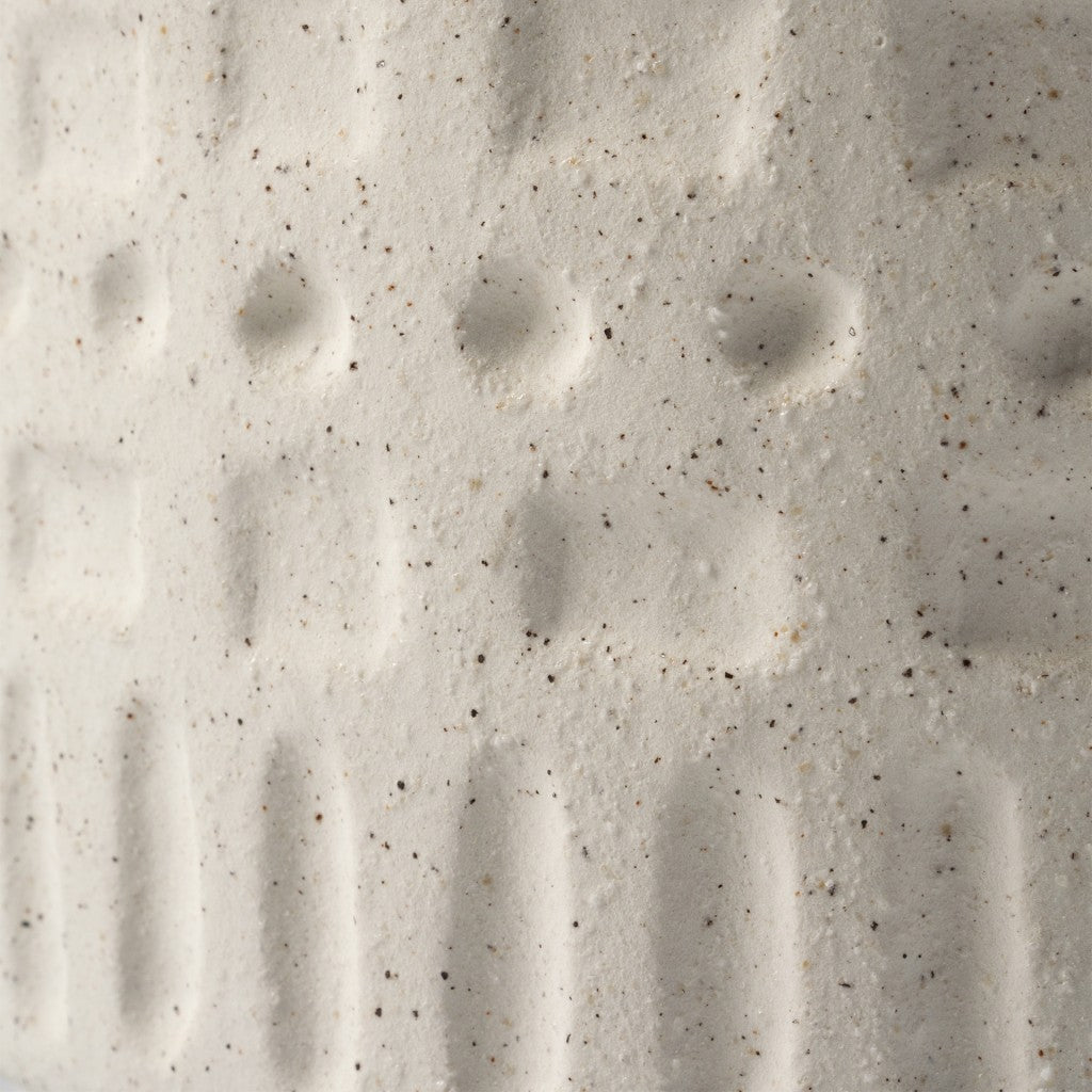 Add a touch of unique design to any space in your home with this Bohemian Beige Happy Face Tribal Vase. This plant stand is made of ceramic and has a short and wide cylindrical shape with four stubby legs at the bottom. The textured beige finish serves as the perfect background for the carved patterns on the bottom edge of the vase. There is also a tribal inspired smiling face at the front of the vase which adds a touch of whimsy to the overall look of this vase. You can use this vase to display live or dried floral arrangements or as a stand-alone decor piece anywhere in your home14" H x 7" W x 7" D