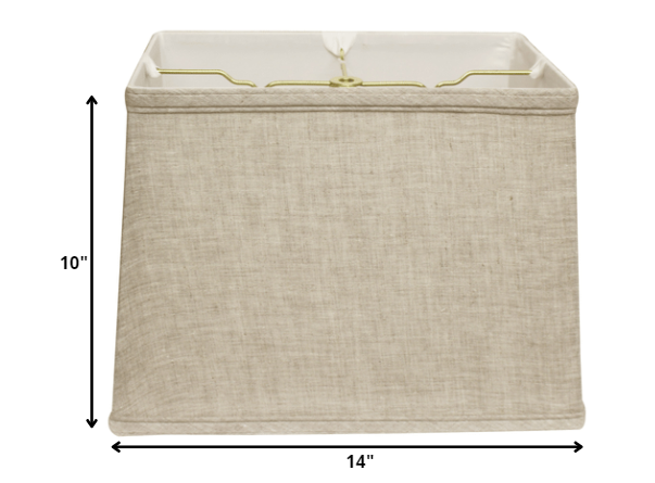 This 14" Cream Throwback Rectangle Linen Lampshade has a hint of mid-century modern flair and will be a great addition to your lamp base. This slant retro rectangle softback lampshade includes a standard washer fitter that fits over a standard harp and can be used with your existing finial design. This high quality crafted rectangle shape has a slight slant to give it some visual interest and is crafted of the finest linen weave with a fold on top and bottom of the shade 10" x 14" x 9"