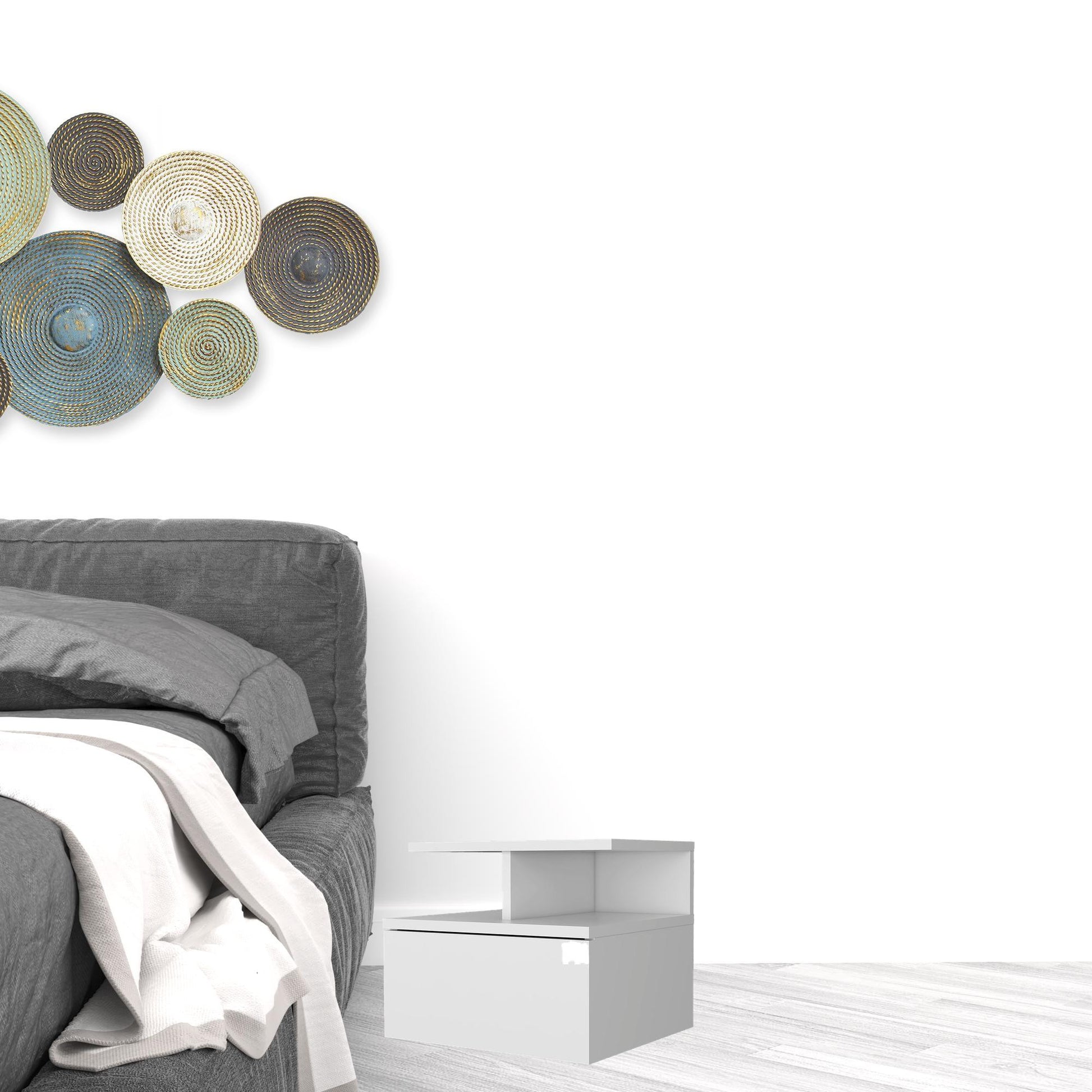 This crisp and clean 14" rectangular one drawer 0 with manufactured wood top looks good with the formal or casual vibe of your bedroom. This nightstand is expertly made from high quality engineered wood. A unique raised white design throughout makes the nightstand further enhance this contemporary look. There are 1 drawers for storage making this bold and dashing piece a great choice for modern spaces. Crafted in Colombia with durable materials, this modern & contemporany nightstand will last for years. The high quality materials used in this unique piece are going to last for years. This unique looks and design will give an alluring modern feel to the atmosphere of your home. 11.6" H x 14.0" W x 13.2" D