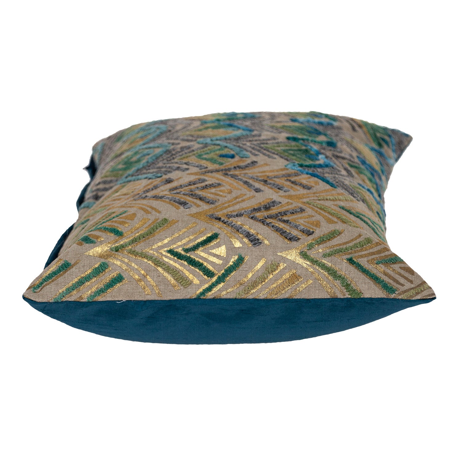 Bring a bit of fashion and zip to your space with this eye-catching and comfy 14" x 20" beige and green zippered 100% cotton throw pillow with embroidery. For anyone that loves to decorate or accent their space with color and texture. A great decorative accessory for your favorite chair, to accent your sofa, or to use as part of your bed ensemble. 6" H x 14" W x 20" D