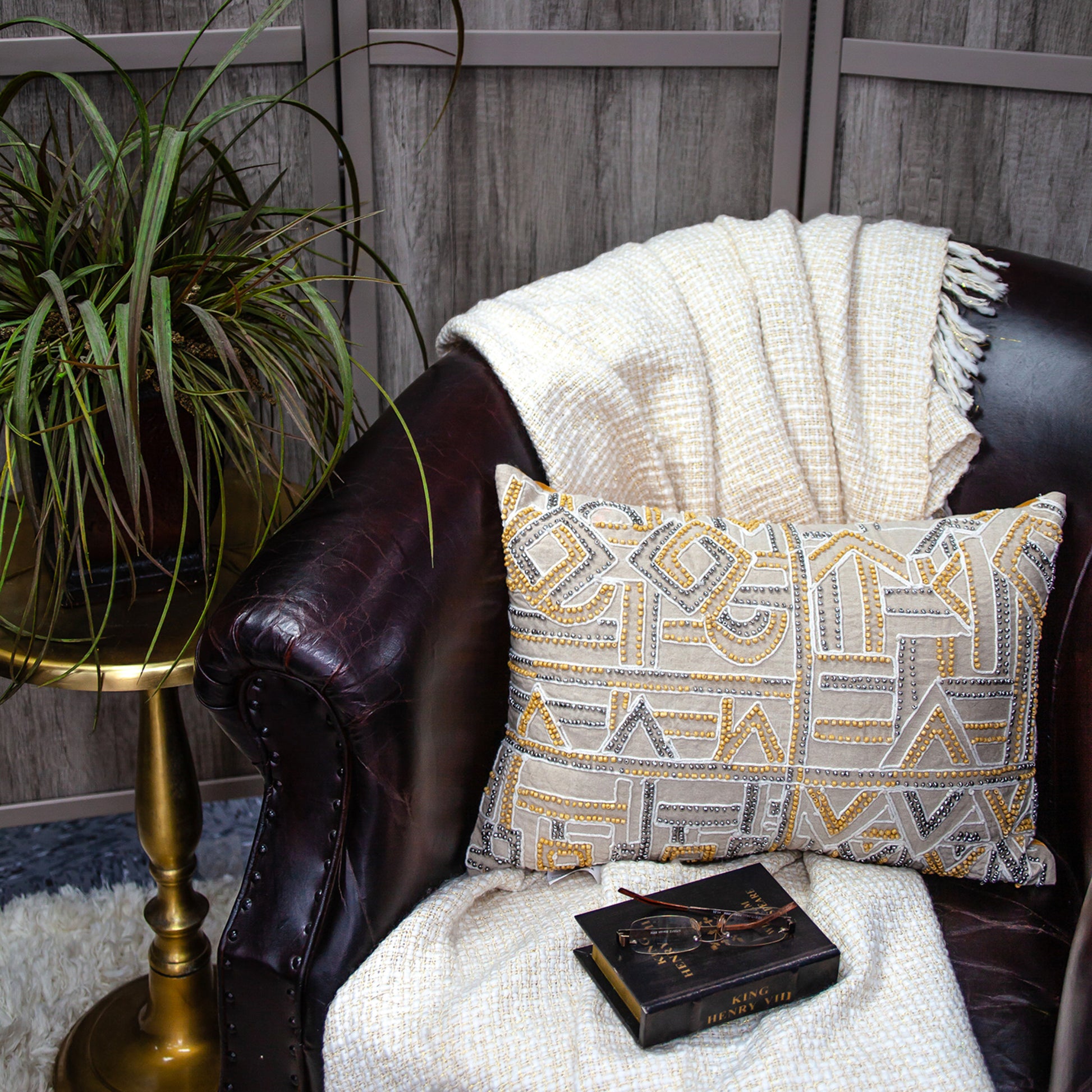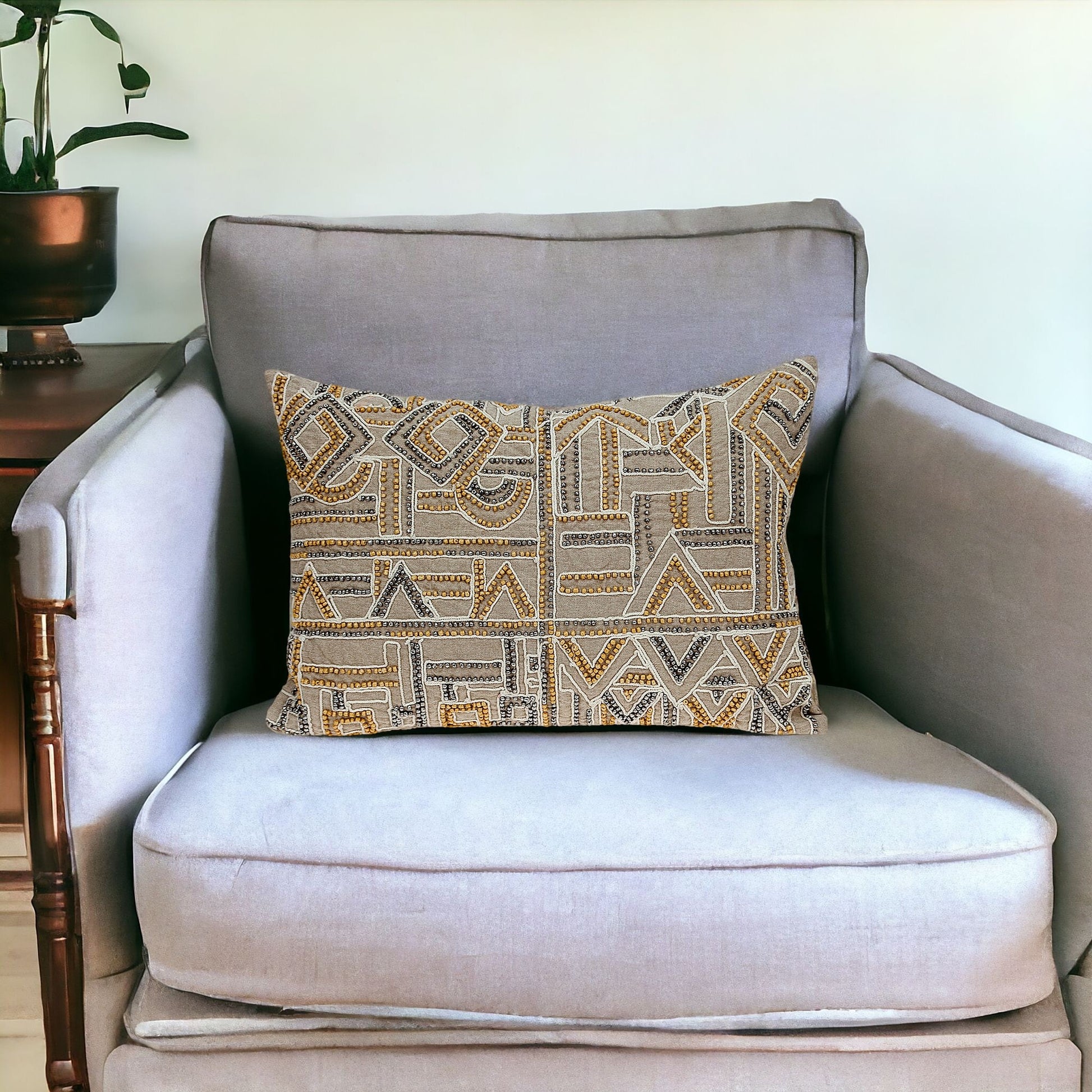 14 X 20 Beige Zippered 100% Cotton Throw Pillow
