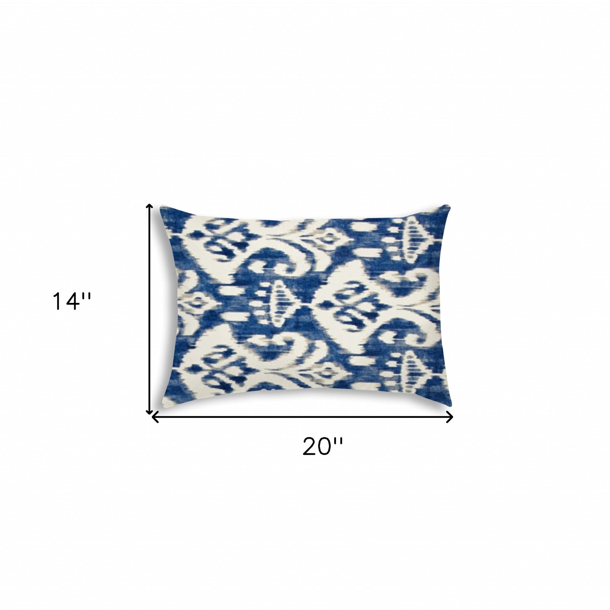 14" X 20" Indigo And Cream Blown Seam Ikat Lumbar Indoor Outdoor Pillow