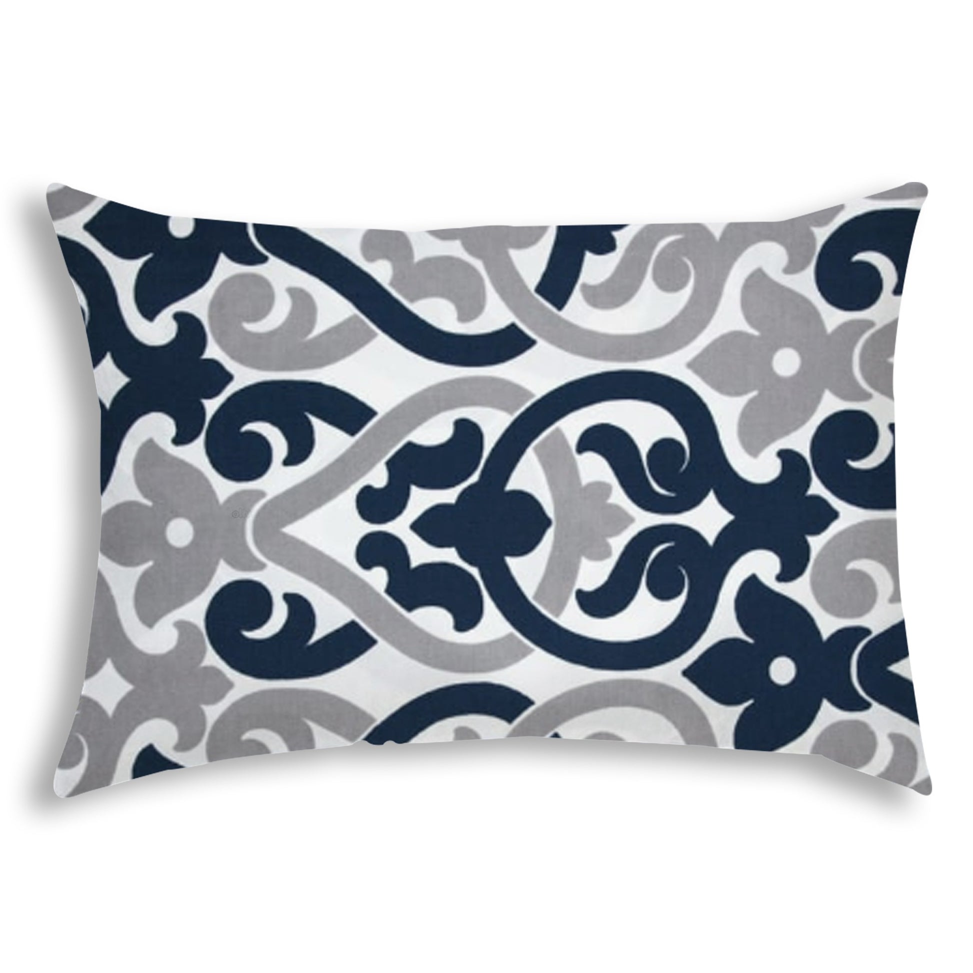 The perfect complement to your sofa, favorite chair, or bed, this 14" x 20" navy blue and white blown seam trellis lumbar indoor outdoor pillow is a great decorative accent. This navy blue and white hued piece represents quality construction, expertly made from durable polyester that is not only long lasting but soft to the touch as well. Durable and rugged enough for outdoors but can still be used inside as well. Decorative pillows are a great way to change up the look and feel of your space easily and quickly. 20" H x 14" W x 5" D