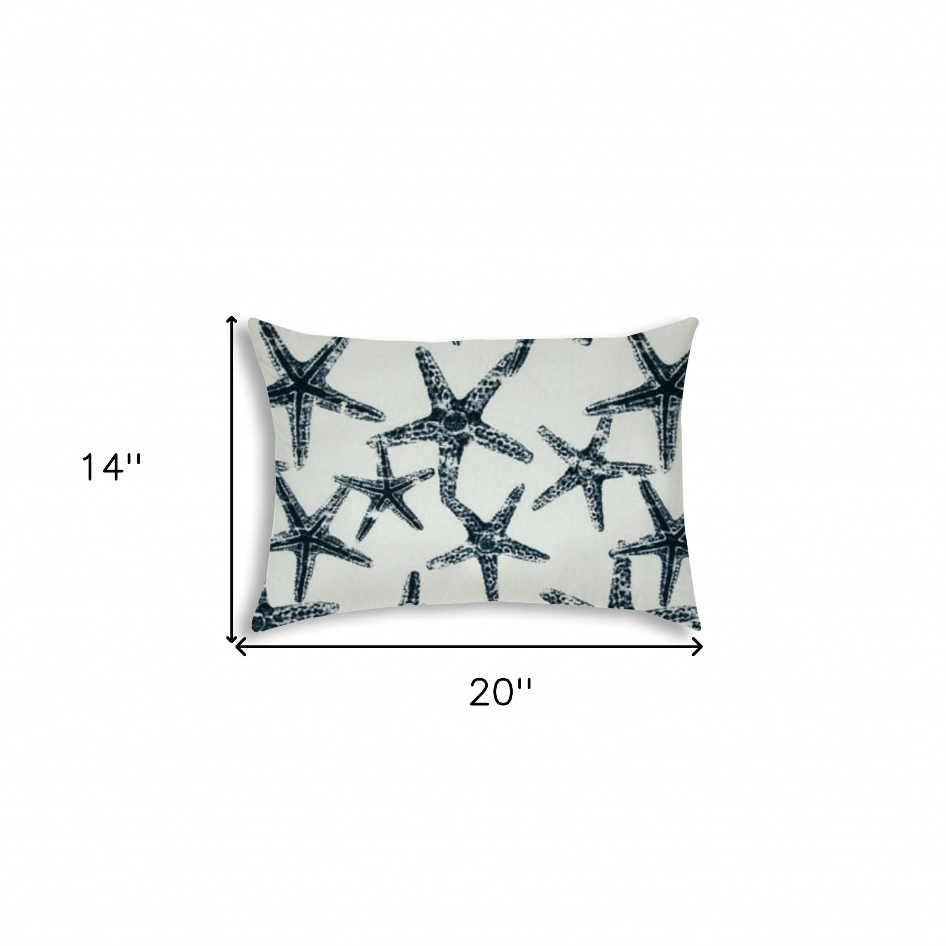 The perfect complement to your sofa, favorite chair, or bed, this 14" x 20" navy blue and white starfish blown seam coastal lumbar indoor outdoor pillow is a great decorative accent. This navy blue and white hued piece represents quality construction, expertly made from durable polyester that is not only long lasting but soft to the touch as well. Durable and easy to care for this pillow is designed to withstand the elements and still look great. Decorative throw pillows add some pizazz but can also be comfy and supportive when you are lounging. 20" H x 14" W x 5" D