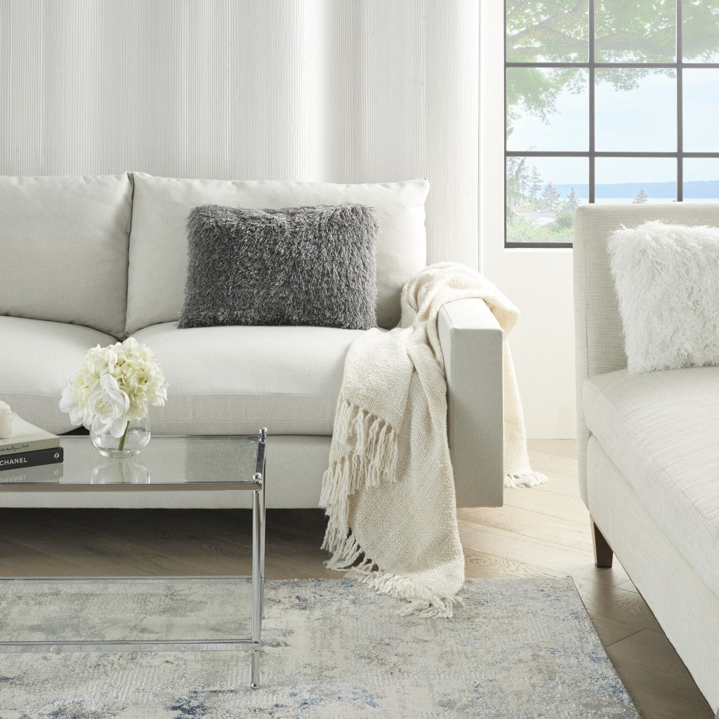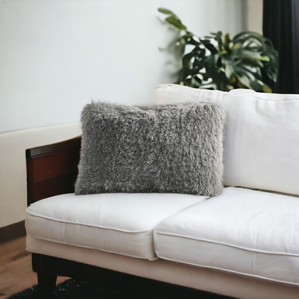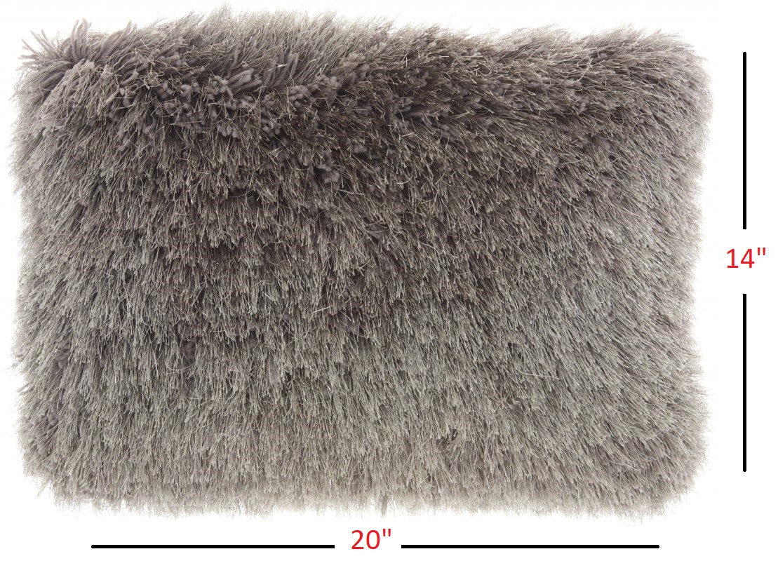 14" X 20" Slate Gray Faux Fur Throw Pillow