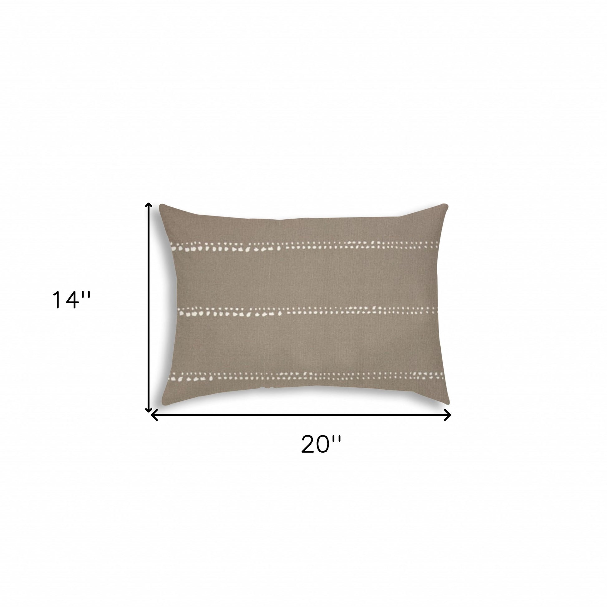 14" X 20" Taupe And White Blown Seam Polka Dots Lumbar Indoor Outdoor Pillow