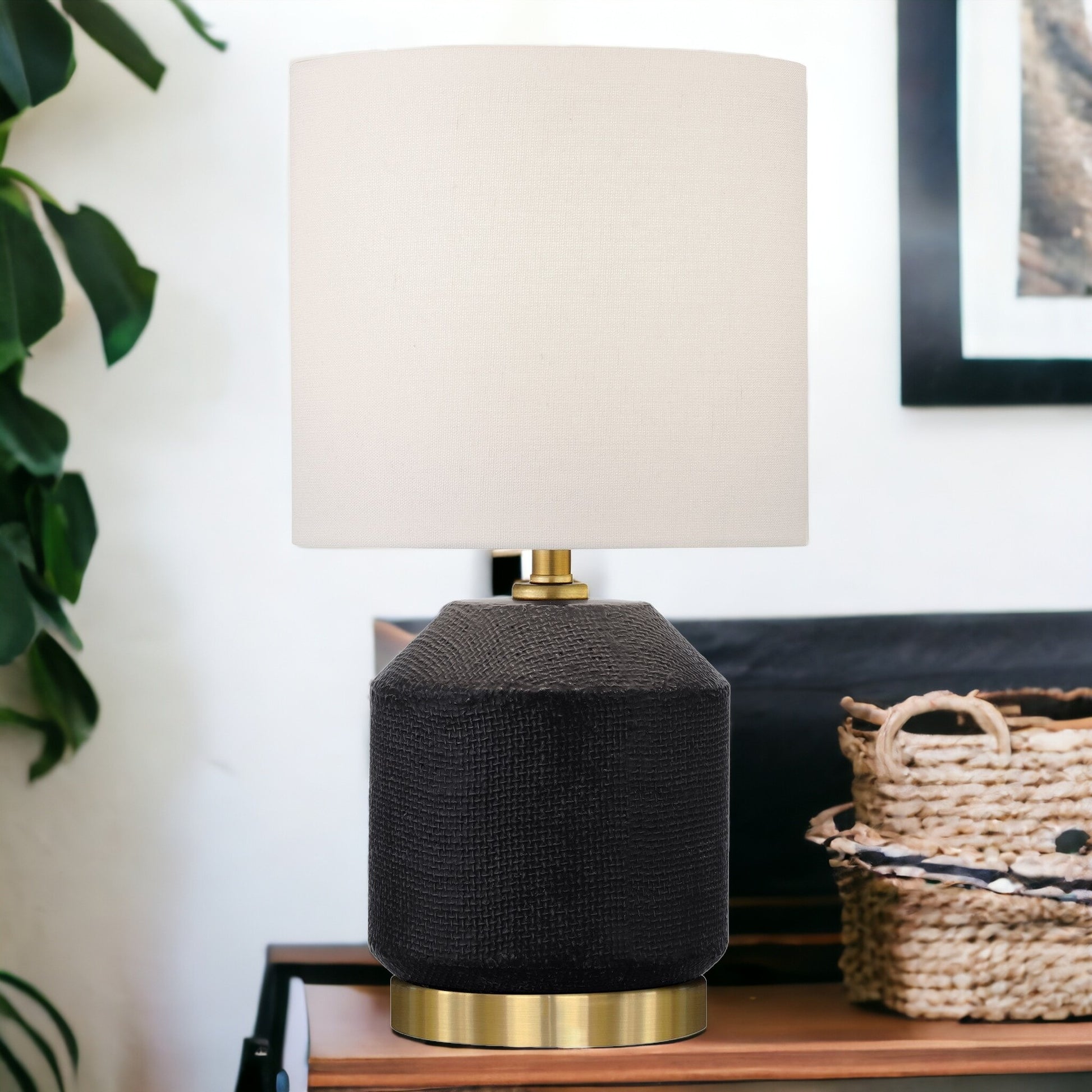 15" Black and Gold Ceramic Cylinder Table Lamp With White Drum Shade