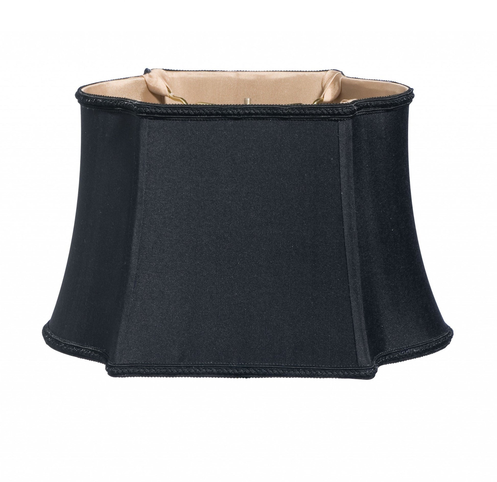 This 16" Black with Bronze Lining Premium Oblong Shantung Lampshade has a hint of traditional flair and will be a great addition to your lamp base. This fancy oblong softback lampshade includes a washer fitter that fits over a standard harp and can be used with your existing finial design. This high quality crafted oblong shape has a slight slant to give it some visual interest and is crafted of the finest shantung with a fold on top and bottom of the shade. 10" x 16" x 10"