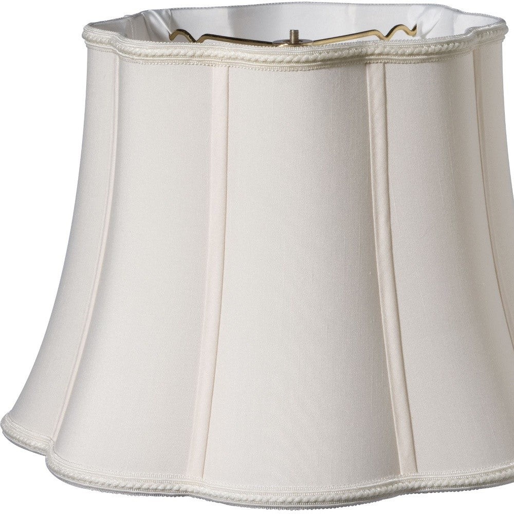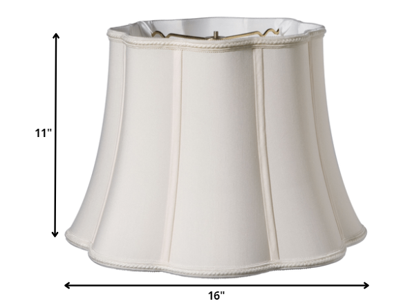 This 16" Cream Melon Scallop Paperback Shantung Lampshade has a hint of traditional flair and will be a great addition to your lamp base. This melon out scallop softback lampshade includes a washer fitter that fits over a standard harp and can be used with your existing finial design. This high quality crafted melon scallop shape has a slight slant to give it some visual interest and is crafted of the finest shantung with a fold on top and bottom of the shade. 11" x 16" x 16"