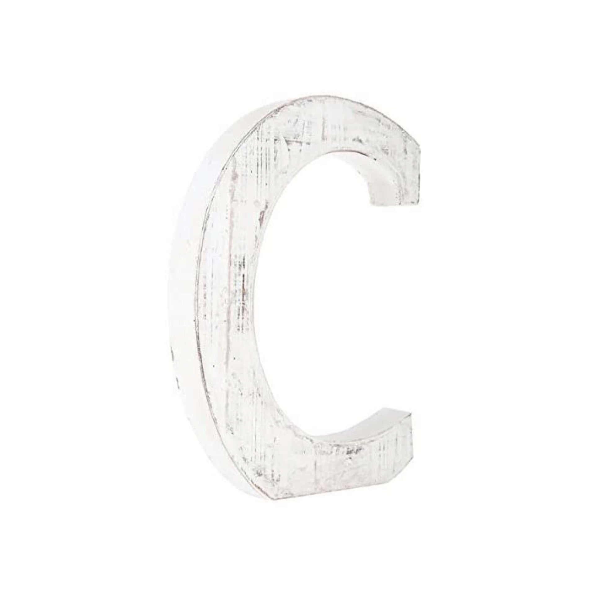16" Distressed White Wash Wooden Initial Letter C Sculpture