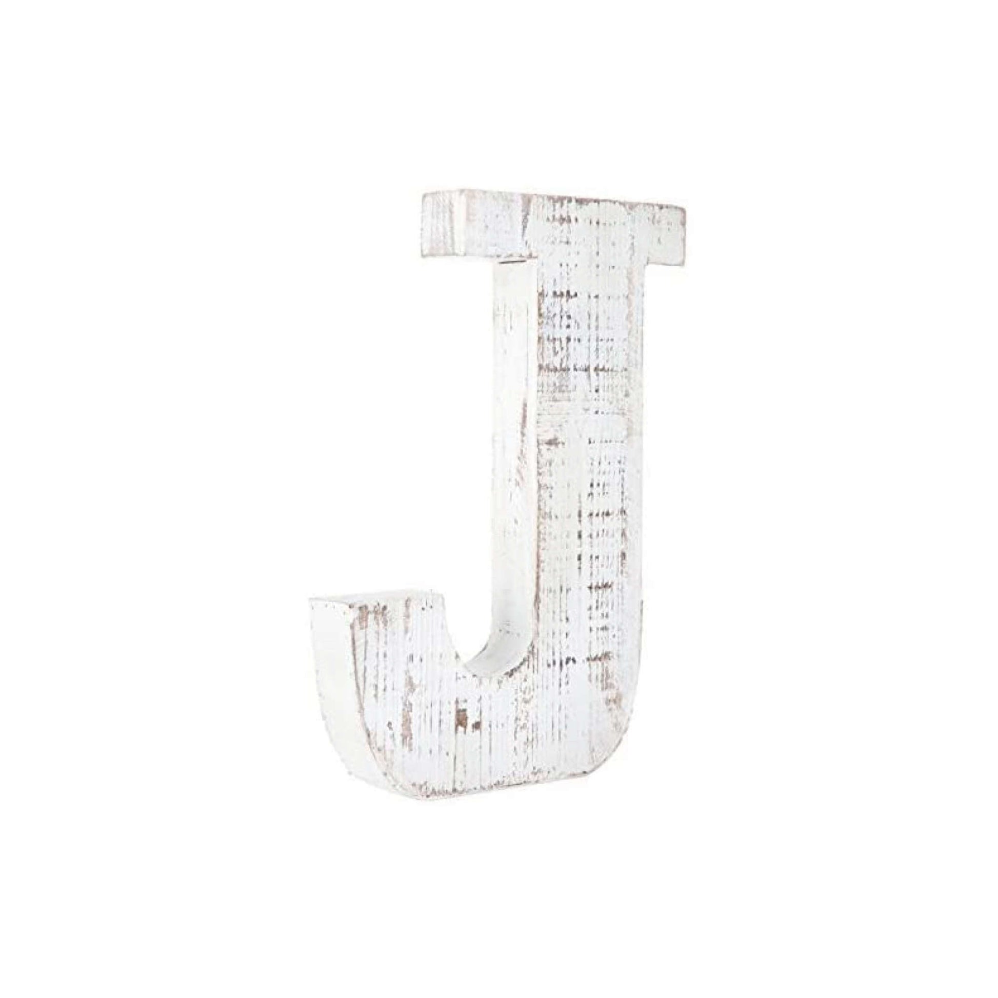 16" Distressed White Wash Wooden Initial Letter J Sculpture