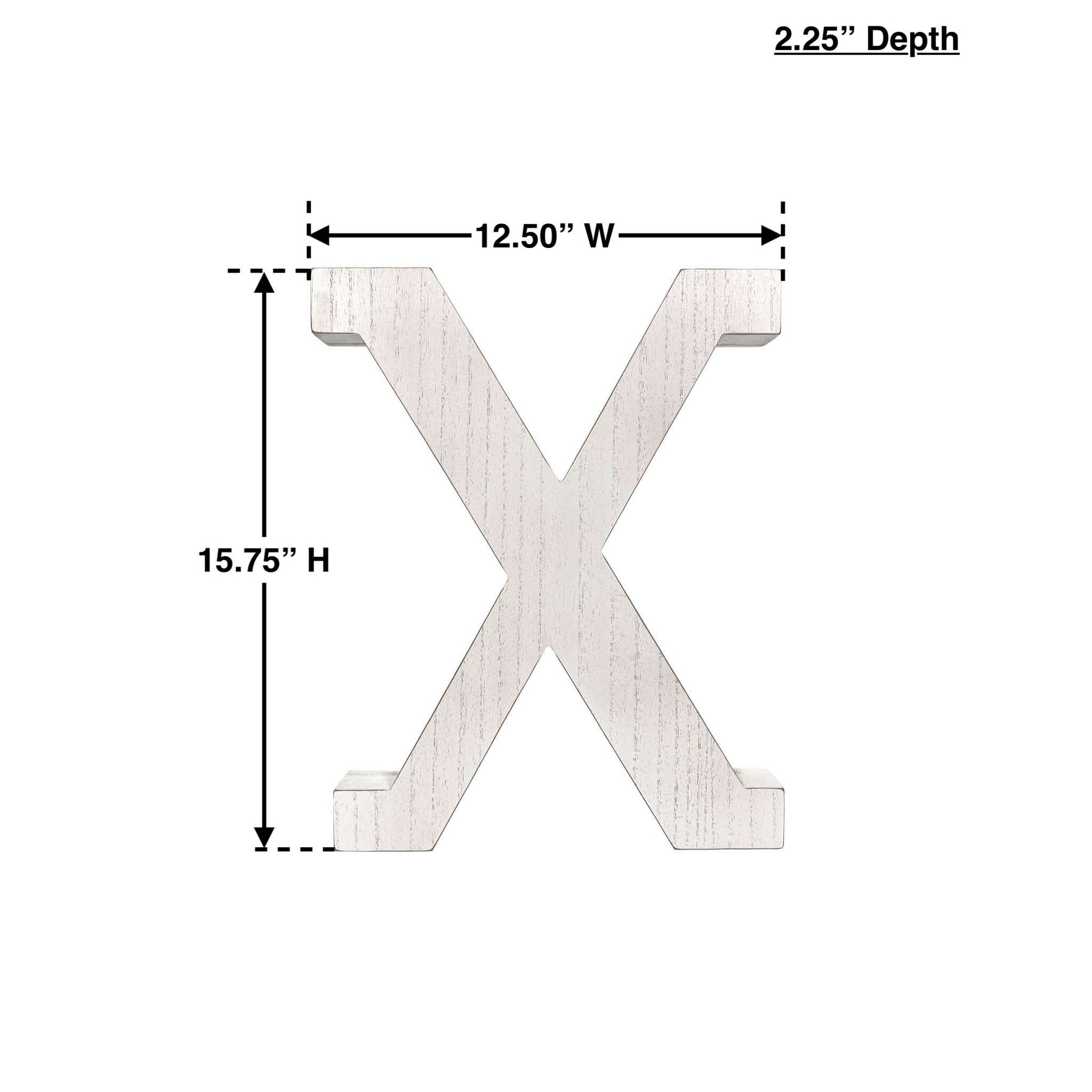 16" Distressed White Wash Wooden Initial Letter X Sculpture