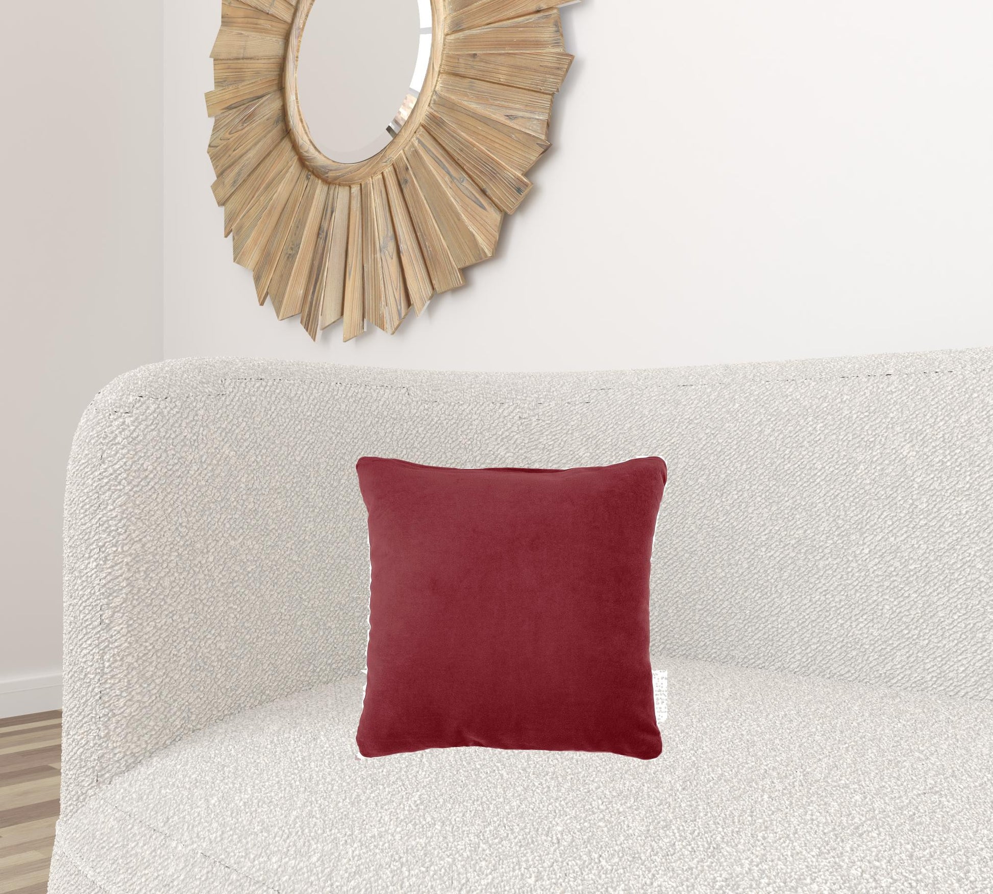 This 16" x 16" red solid color velvet throw pillow will add a beautiful decorative accent to your decor. This super soft decorative pillow is expertly made of high grade, long lasting velvet in a red coloration. Great to use on its own or mix with other decorations for the perfect look. A great decorative accessory for your favorite chair, to accent your sofa, or to use as part of your bed ensemble. 5" H x 16" W x 16" D