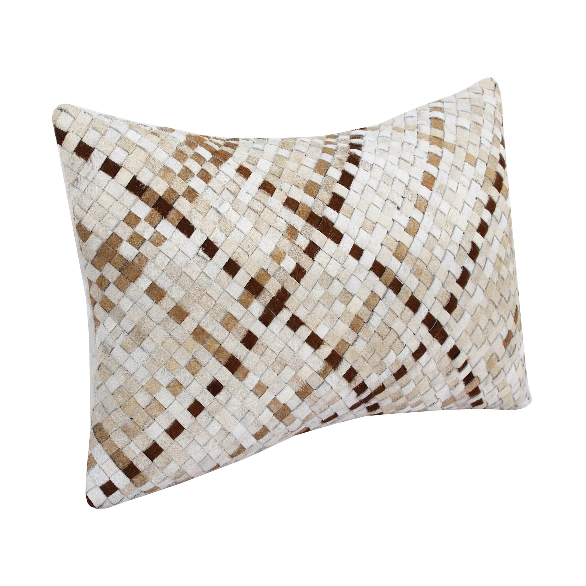 Unique and decorative, this comfortable 16-inch x 24-inch brown and ivory check faux leather zippered pillow will leave a lasting impression. This soft and durable decorative pillow is expertly made of high grade, long lasting faux leather in a brown and ivory coloration. Super soft and built to hold its shape, this polyfill pillow is a great option. Great to use on its own or mix with other decorations for the perfect look. Decorative pillows are a great way to change up the look and feel of your space easily and quickly. 16-inch H x 24-inch W x 5-inch D