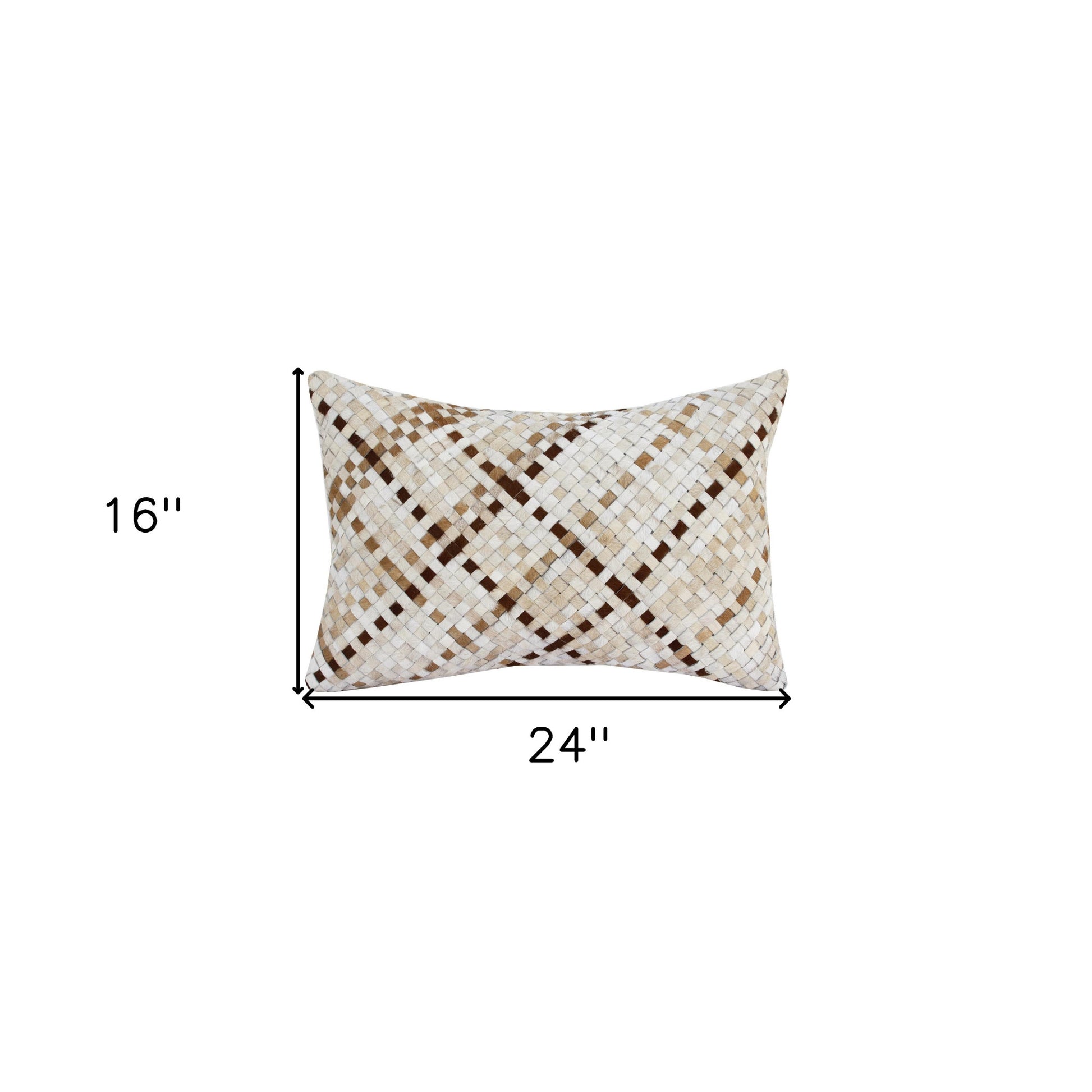16" X 24" Brown and Ivory Check Faux Leather Zippered Pillow