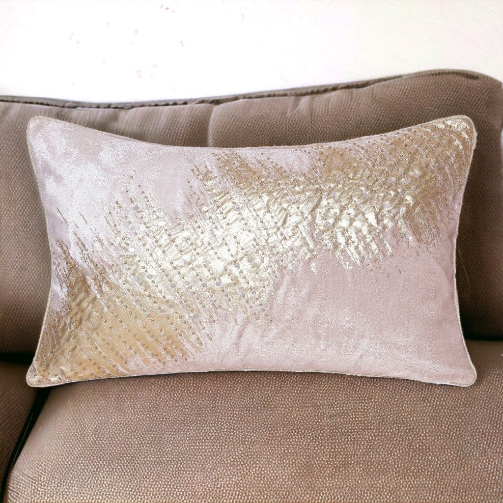 Unique and decorative, this comfortable 16-inch x 24-inch gold abstract polyester zippered pillow with beads will leave a lasting impression. The gold coloring of the extremely durable and long lasting polyester will add dimension and texture to your space. Super soft and built to hold its shape, this polyfill pillow is a great option. Great to use on its own or mix with other decorations for the perfect look. A great decorative accessory for your favorite chair, to accent your sofa, or to use as part of your bed ensemble. 16-inch H x 24-inch W x 4-inch D