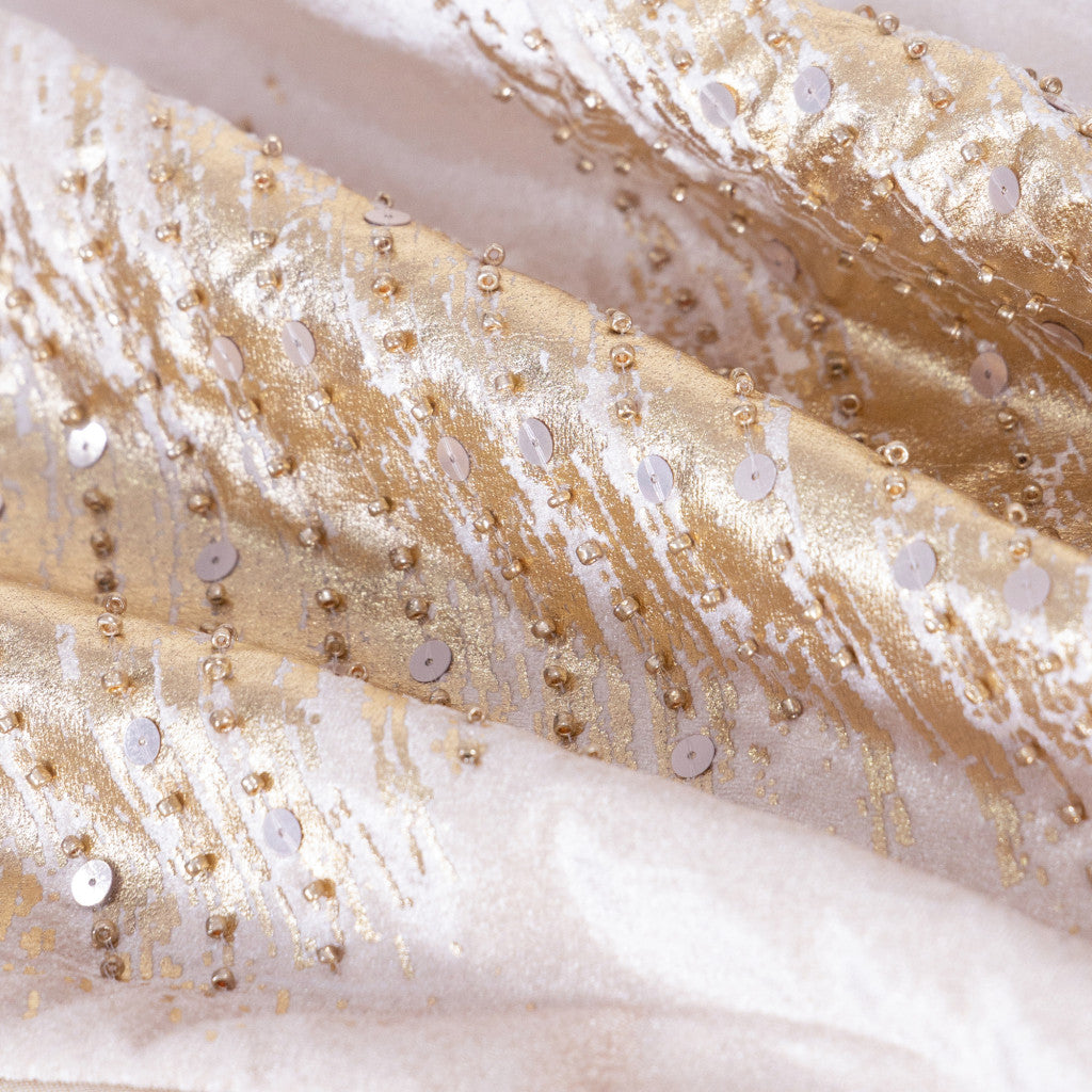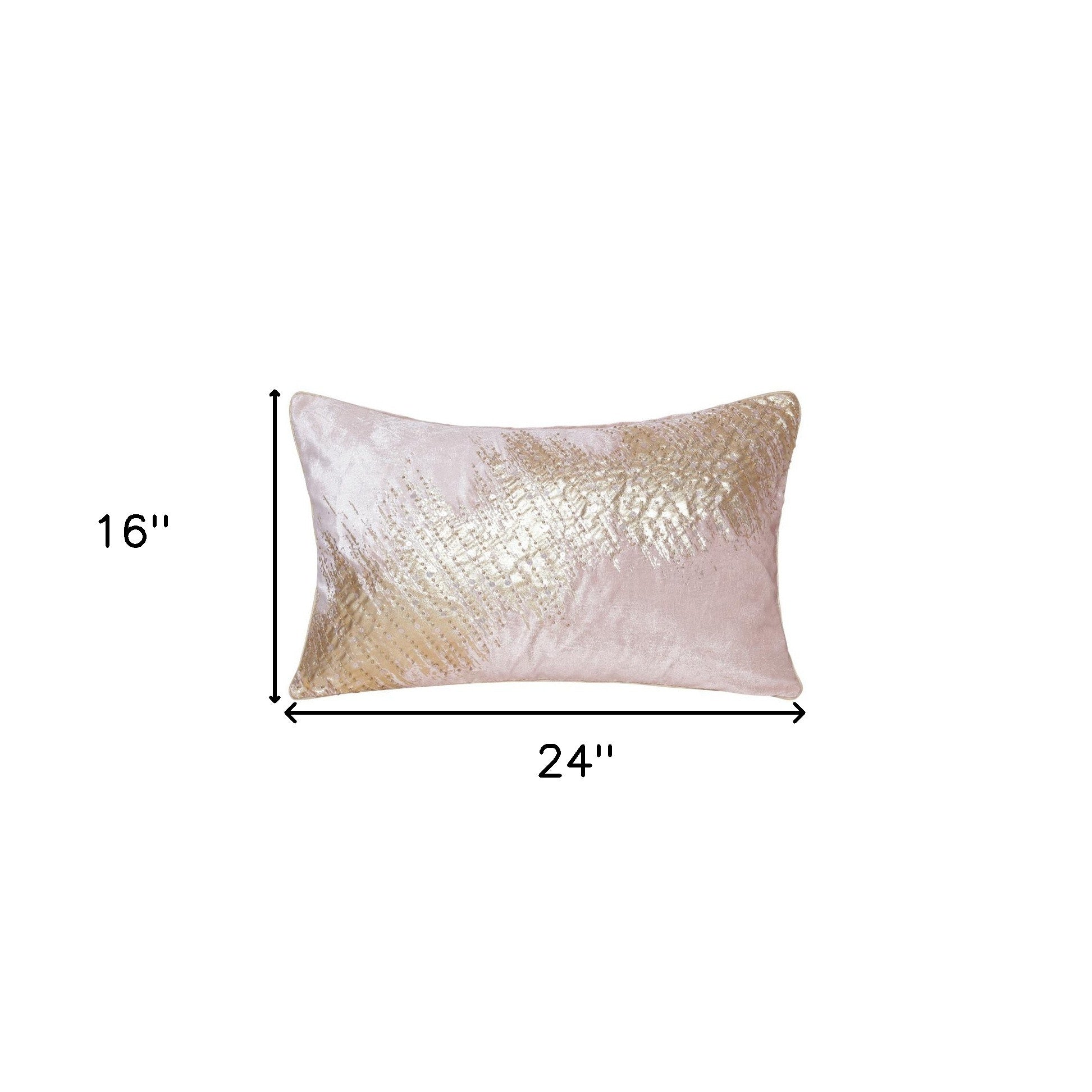 16" X 24" Gold Abstract Polyester Zippered Pillow With Beads